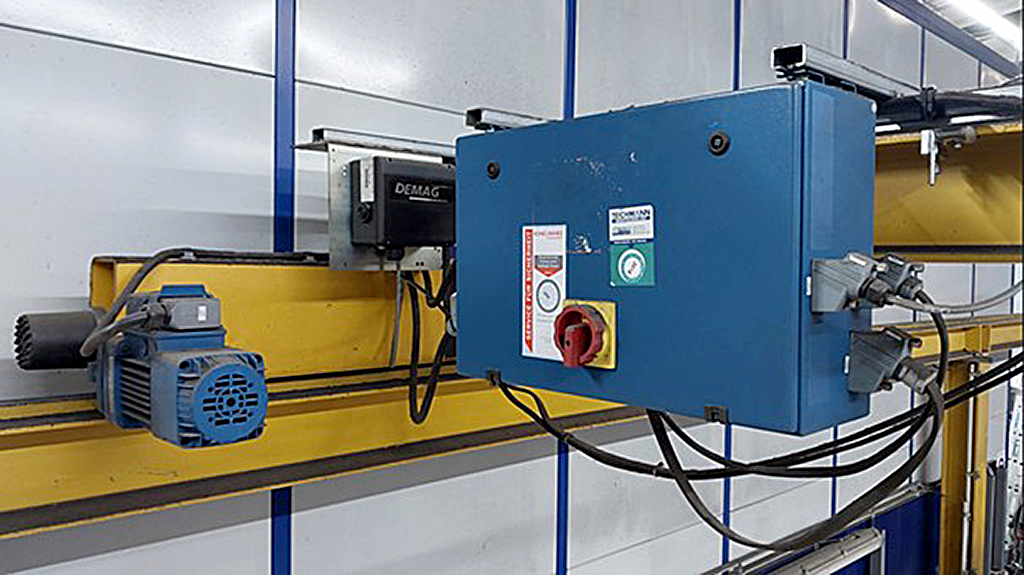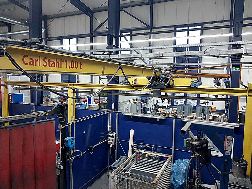 | Beschreibung Angeboten wird ein Demag Einträger-Kleinkransystem in Portal-Ausführung. Kranbahnlänge: 10000mm, Spurbreite: 8500mm, 1x Kranträger inkl. 2x Kranfahrwerken, Hakenweg: 5,0m, Hebezeug: Demag Elektrokettenzug Typ 620S/DC-Com, Tragfähigkeit: 1000kg, kompletter Stahlbau 6 Stützen inkl. Bodenplatten, 2 Kranbahnen, 1 Kranträger. Besichtigung nach Absprache möglich. |