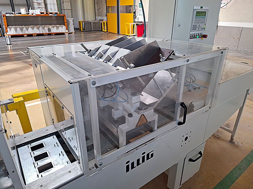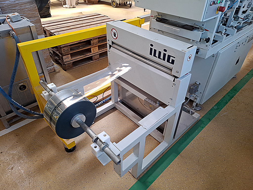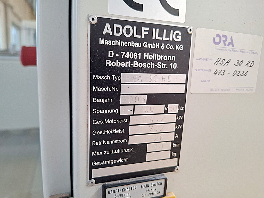 | Beschreibung Angeboten wird eine ILLIG HSA 30 RD - Hochleistungs-Durchlauf-Siegelanlage für Blisterverpackungen: Blisterfolien: PVC, PET APET/PETG, PS, Foliendicke: 150µm-600µm, Deckelmaterialien: siegelfähiger Karton, Aluminium-Verbundfolien, Tyvek, Siegelbereich X/Y max. ca. 500mm/300mm, Ziehtiefe max. ca. 100mm, 8-18 Takte/Minute. Besichtigung nach Absprache möglich. |