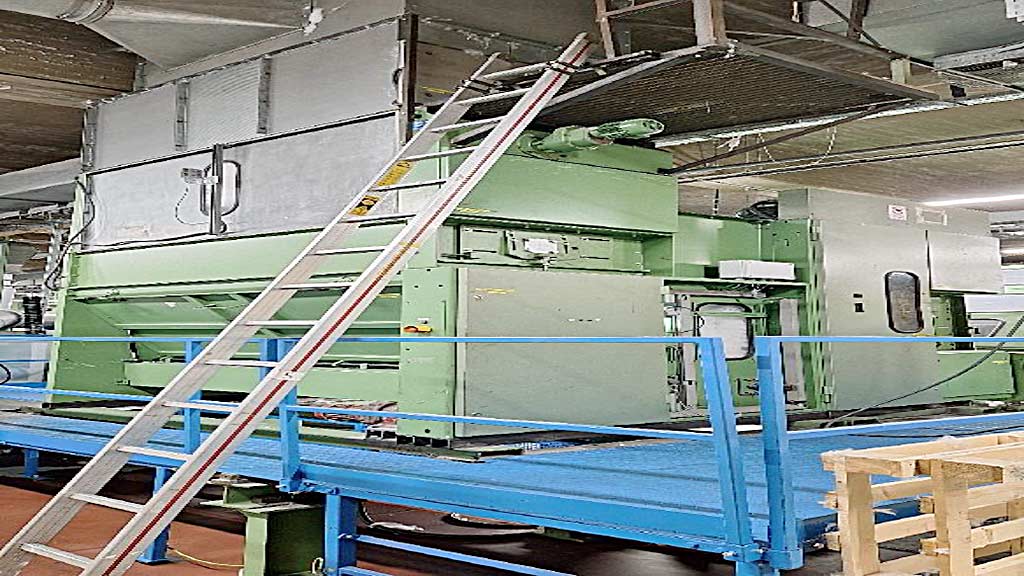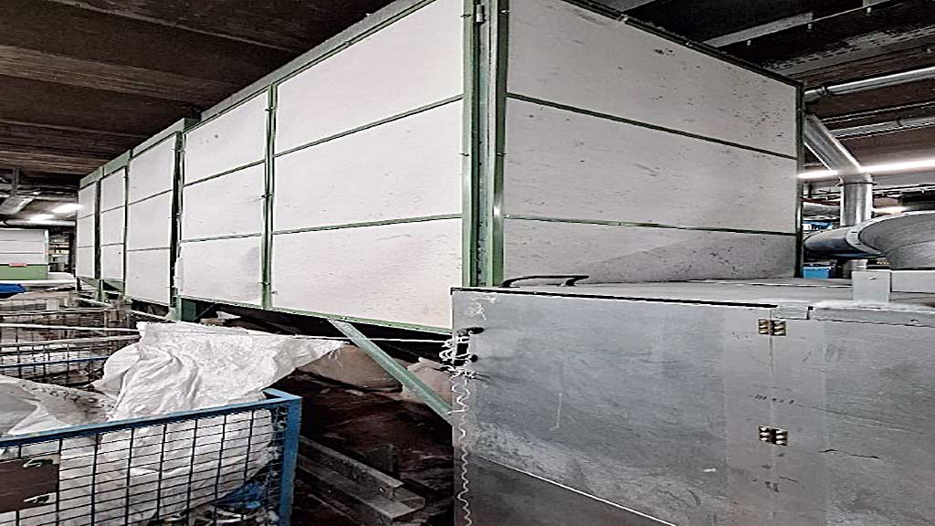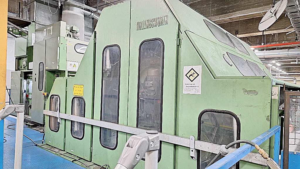 | Beschreibung Eine komplette Vliesstoff-Produktionsanlage (nonwoven fabric) inklusive Peripheriegeräte und einer kompletten Vormischanlage steht zur Verfügung. 1) Vormischanlage mit Krempelwolf Houget Duesberg Bosson, Baujahr: 1972, Arbeitsbreite: 1500mm, Trommel: 1, Arbeiter-Wender-Paare: 3, Ausgangsarbeiter: 1, Einzugswalzen: 2, Gesamtanlagendimensionen X/Y/Z: ca. 11000mm/1800mm/3100mm, Betriebsstunden: ca. 16414h, inklusive Zuführtisch und Faserballenöffner. 2) Füllschacht Spinnbau Bremen, Baujahr: 1989, Maschinendimensionen X/Y/Z: ca. 4000mm/2600mm/6250mm. 3) Bandwaage mit Rüttelschacht Protec. 4) Krempel Hergeth, Baujahr: 1990, Arbeitsbreite: 2500mm, Einzugswalzen: 2, Einzugswalzendurchmesser: 94mm, Vorwalzendurchmesser: 413mm/550mm, Arbeiter-Wenderwalzendurchmesser: 219mm/123mm, Übertragungswalzendurchmesser: 550mm, Tambourdurchmesser: 1500mm, Abnehmerwalzendurchmesser: 850mm, Stauchwalzendurchmesser: 260mm, Andruckwalzendurchmesser: 2500mm. 5) Leger Autefa Topliner CL 4000/4002 - WebMax, Baujahr: 2006, min. Feinheitsbereich: 0,7dtex, Fasertypen: Chemie/Natur/Regenerat/Mischungen, max. Florgewicht: 100g/m², max. Florgewicht mit Vliesleger: 5000g/m², max. Legerbreite: 3500mm, Arbeitsbreite: 2500mm, max. Ablegegeschwindigkeit: 130m/min, Legererhöhung: 100mm, Maschinendimensionen X/Y/Z: ca. 3850mm/8800mm/2200mm. 6) Streckwerk, Arbeitsbreite: 2500mm, Maschinendimensionen X/Y/Z: ca. 1600mm/3650mm/1650mm. 7) Doppel-Nadelmaschine Dilo CBF 31/HVSL 31, Baujahr: 2007, max. Arbeitsbreite: 3100mm, Hubfrequenz: 1375/min, Nadelbalkenhub: 60mm, horizontaler Balkenhubsbereich: 0mm-6mm, Nadelzahl pro 1m-Arbeitsbreite: ca. 15430, Maschinendimensionen X/Y/Z: ca. 3350mm/5150mm/4500mm, Gewicht: ca. 38000kg. 8) Warenspeicher Suchy WOB 3200, Aufnahmevolumen: 40m³, Warengewichtsbereich: 50g-2000g/m², max. Arbeitsgeschwindigkeit: 40m/min, max. Produktionsgeschwindigkeit: 20m/min, Arbeitsbreitenbereich: 1000mm/3000mm, Walzenoberbreite: 3200mm, Maschinendimensionen X/Y/Z: ca. 4300mm/5050mm/5300mm. 9) Längsschneideinrichtung Suchy, Baujahr: 2006, Gewicht: ca. 250kg. 10) Steigdockenwickler, Wickelwalzendurchmesser: 350mm, min. Wickeldurchmesser: 3Zoll, max. Wickeldurchmesser: 1500mm. 11) Randreißer Hepp-Schwamborn. 12) Röntgenmessgerät Protagon Q6. Hierbei handelt es sich um eine komplette und automatisierte Vliesstoff-Produktionsanlage, anfangend mit Faserballen. Dokumentation vorhanden. Eine Besichtigung vor Ort ist möglich. Voraussichtlich ab Ende März 2026 verfügbar. |