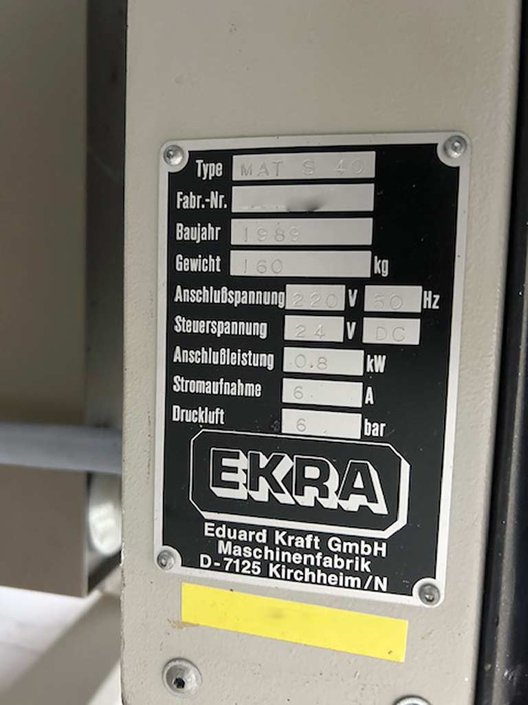 | Beschreibung Eine Schablonen-Siebdruckmaschine Ekra steht zur Verfügung. Rahmendimensionen X/Y: 800mm/570mm, Druckdimensionen X/Y: 500mm/390mm, Druckgeschwindigkeit: 110mm/s, Positioniergenauigkeit: +/-0,02mm, Rakeldruck: 320N, Tischverstellung X/Y: +/-8mm, max. Druckgutstärke: 40mm, Maschinendimensionen X/Y/Z: ca. 1300mm/1050mm/1350mm, Gewicht: ca. 350kg. Dokumentation vorhanden. Eine Besichtigung vor Ort ist möglich. |