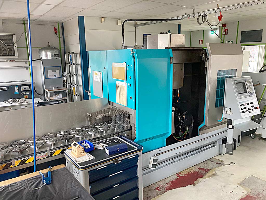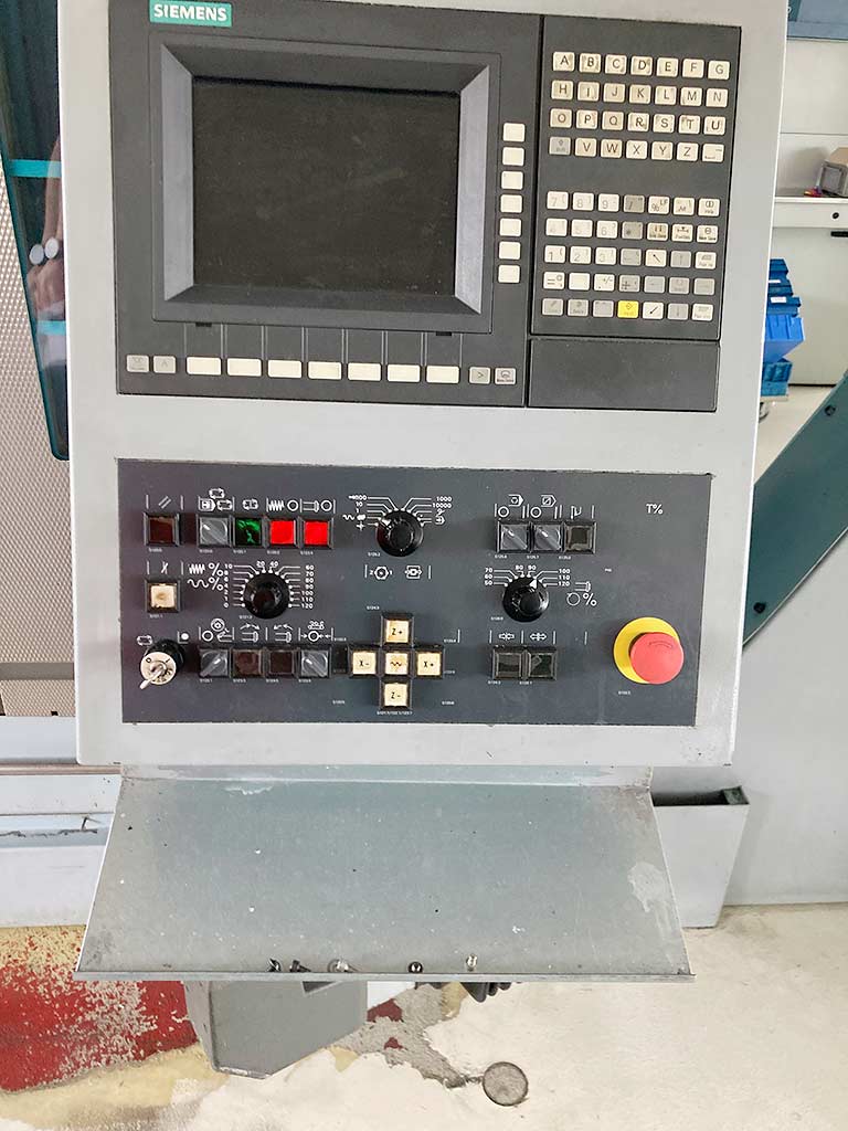| Beschreibung Drehdurchmesser: 200mm, Unlaufdurchmesser: 260mm, Drehhöhe: 200mm, Spindeldurchlass: 30mm, Spindeldrehzahl: 7500U/min, Leistung: 10kW, Drehmoment: 49Nm. Verfahrweg X/Z: 520mm/200mm, Eilgang X/Z: 30m/min, Werkzeugplätze: 14, Werkzeugaufnahme: VDI 30, Antriebswerkzeugdrehzahl: 6000U/min. Maschinendimensionen X/Y/Z: ca. 2100mm/2100mm/2300mm, Gewicht: ca. 3300kg, Steuerung: Siemens Sinumerik. Dokumentation vorhanden. Eine Besichtigung vor Ort ist möglich. |