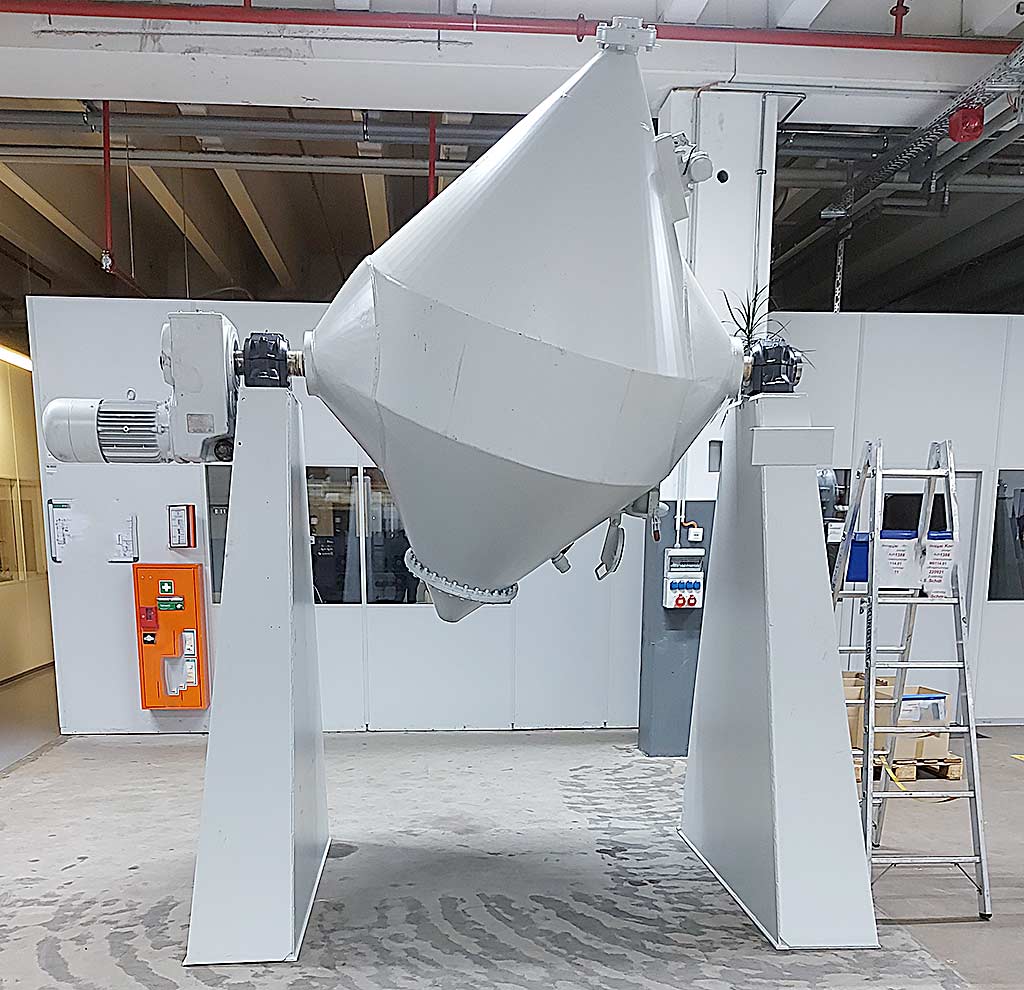 | Beschreibung Ein freistehender Doppelkonusmischer mit beidseitiger Lagerung unbekannten Herstellers steht zur Verfügung. Kapazität: ca. 1000kg. Damit wurden Schleifkonzentrate (abrasive Pulver etc.) gemischt. Keine Dokumentation und keine CE-Kennzeichnung. Eine Besichtigung vor Ort ist möglich. |