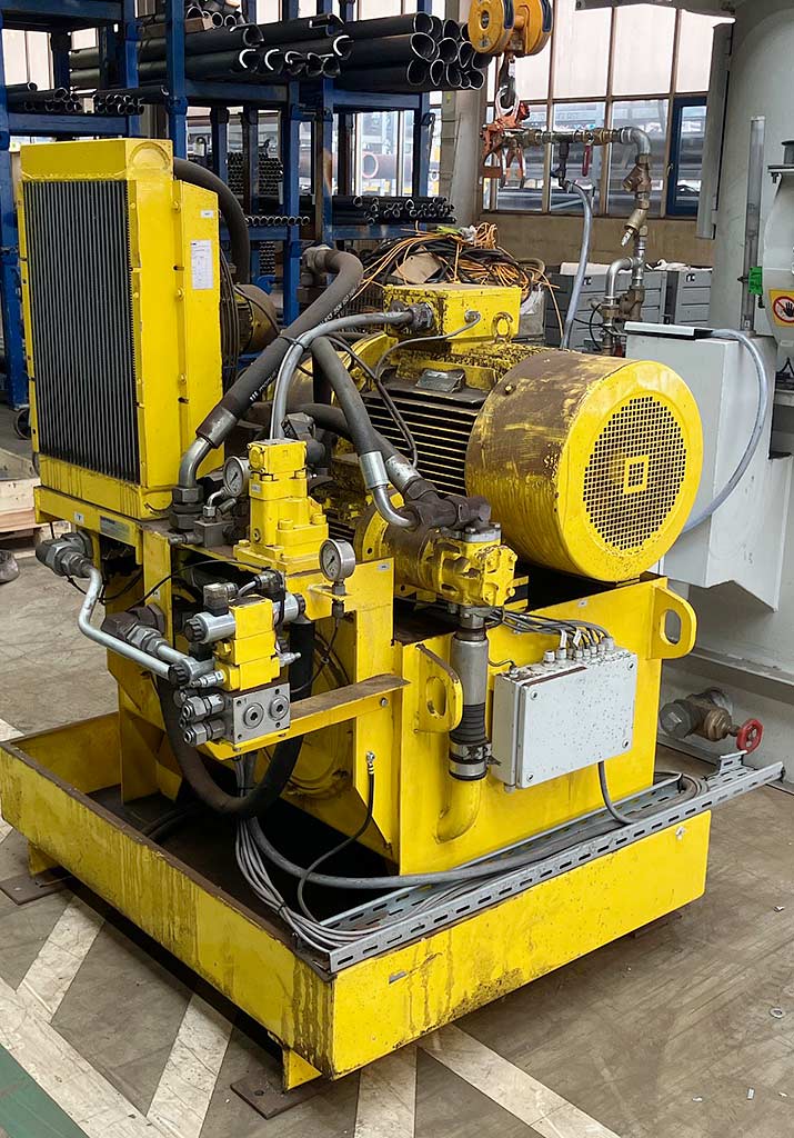 | Beschreibung Hydraulikpumpe: BNK 250, Pumpenfördervolumen: 173l/min, Motor: AC-Motoren FCMP 200L-4/H, Motorleistung: 30kW, Drehzahl: 1470U/min. Dokumentation vorhanden. Eine Besichtigung vor Ort ist möglich. |