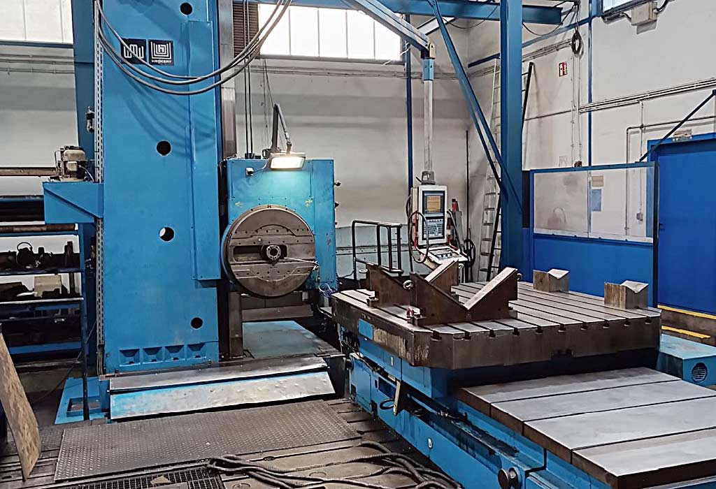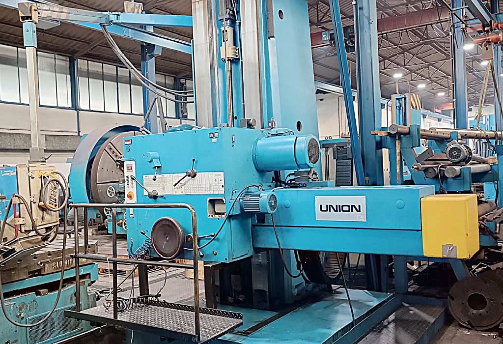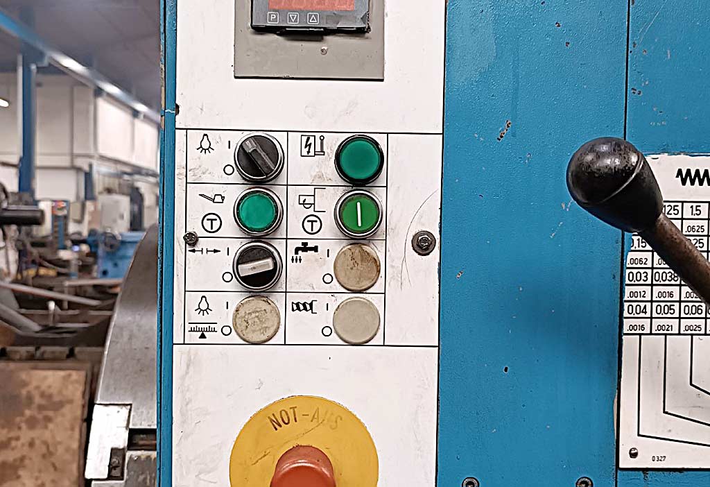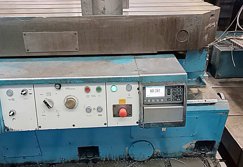 | Beschreibung Bohrspindeldurchmesser: 130mm, Werkzeugaufnahme: SK50, Zentrierung: 500mm, Verfahrweg X/Y/Z: 250mm/160mm/380mm, Verfahrweg W/U: 1000mm/320mm, Vorschub: 2m/min, Eilgang: 5m/min, max. Durchmesser Bohren/Planen: 800mm/1400mm, Drehmoment Bohrspindel/Plansupport: 3100Nm/6150Nm, Aufspannplattendimensionen X/Y/Z: 3500mm/1750mm/350mm, Gewicht: ca. 30000kg, Steuerung: Bosch. Inklusive Winkelkopf, Verlängerungsstück, Steilkegelwerkzeughalter für SK50 (ohne Werkzeuge), 4x Plattenfelder mit den Dimensionen 1080mm/2000mm und Ausbohrapparat. Dokumentation vorhanden. Eine Besichtigung vor Ort ist möglich. |