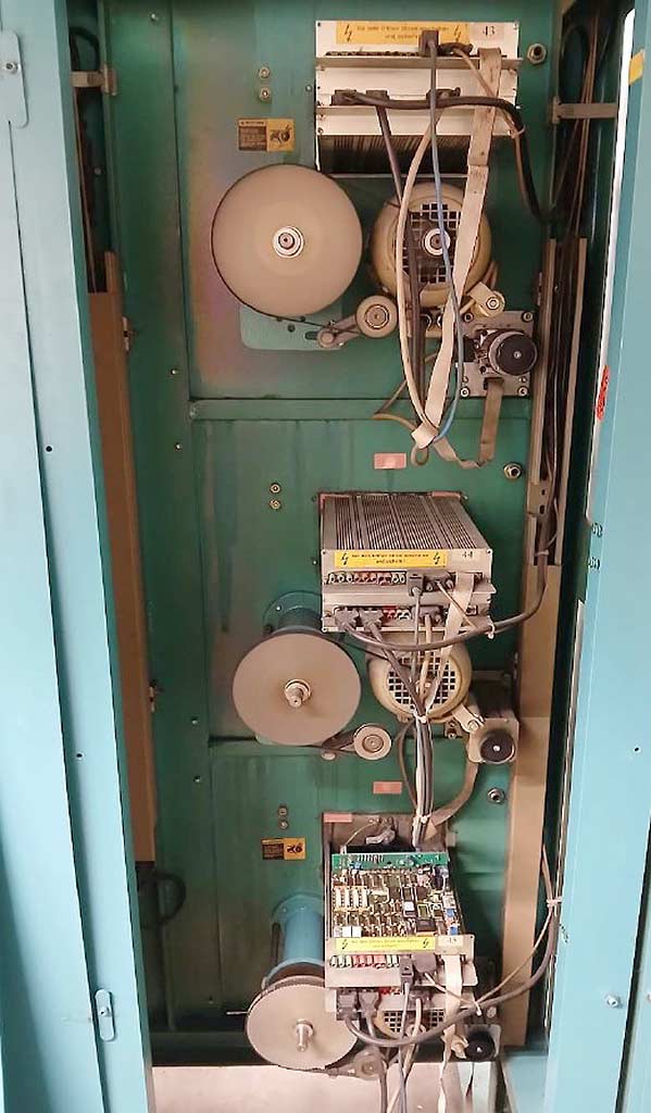 | Beschreibung Eine Take-up-Spulmaschine Sahm für Parallelspulung steht zur Verfügung, Hubbreitenbereich: 10mm-300mm, max. Spulendurchmesser: 400mm, gespultes Material: Monofil, max. Bändchenbreite: 30mm, max. Fadengeschwindigkeit: 600m/min, max. Bewicklungsbreite: 310mm, max. Spulengewicht: 20kg, Zugkraftbereich: 10cN-1250cN, Spulköpfe: 90, Dokumentation vorhanden, Eine Besichtigung vor Ort ist möglich. |