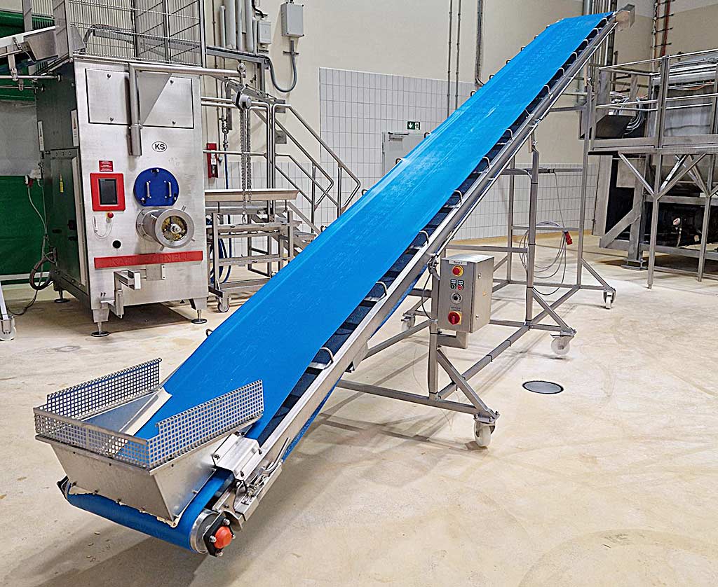 | Beschreibung Ein Lebensmittel-Bandförderer Kittner steht zur Verfügung. Breite: 600mm, Gesamtlänge: 8300mm, Motorleistung: 370W, Bandgeschwindigkeit: 6,6m/min, Winkel: 31,5°, Förderhöhe: 3300mm. Dokumentation vorhanden. Eine Besichtigung vor Ort ist möglich. |