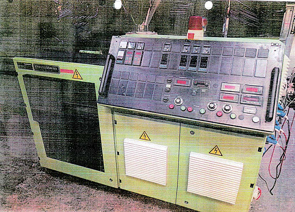 | Beschreibung Ein im Coextrusionsverfahren verwendeter gegenläufiger Beistell-Doppelschneckenextruder Krauss-Maffei steht zur Verfügung. Schneckendurchmesser: 40mm, Material: Hart-PVC, Schneckendrehzahl: 50U/min, Durchsatzleistung: ca. 50-80kg/h, Betriebsstunden: ca. 42100h. Inklusive Rollenführung mit Unterrahmen. Dokumentation vorhanden. Eine Besichtigung vor Ort ist möglich. |