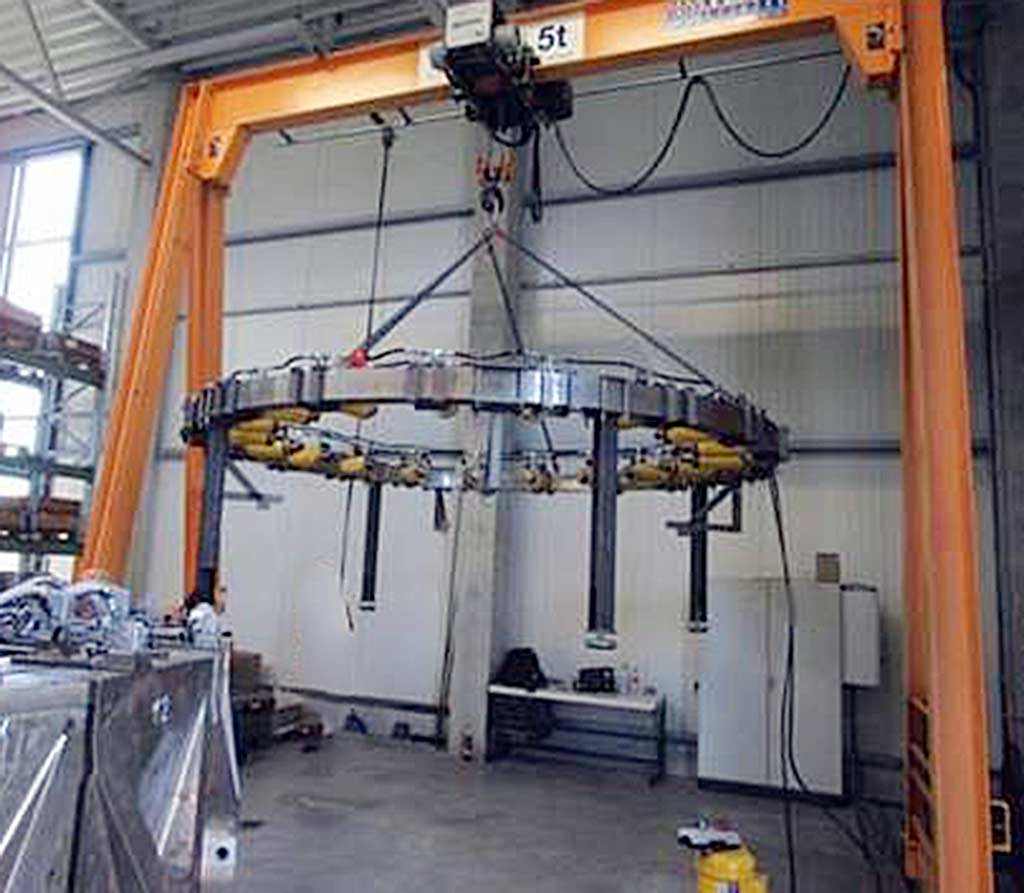| Beschreibung Ein im Jahr 2014 durch die Fa. Teichmann neu- und umgebauter Einträger-Portalkran steht zur Verfügung. Traglast: 5000kg, Spurmittelmaß: 6000mm, Hubhöhe: 6000mm, Kranfahrwerkslänge: 3000mm, Katze: Einschienenhängekatze, Hubwerksgeschwindigkeit: 5m/min, Katzfahrwerksgeschwindigkeit: 20m/min, Kranfahrwerksgeschwindigkeit: 20m/min. Dokumentation vorhanden. Eine Besichtigung vor Ort ist möglich. |