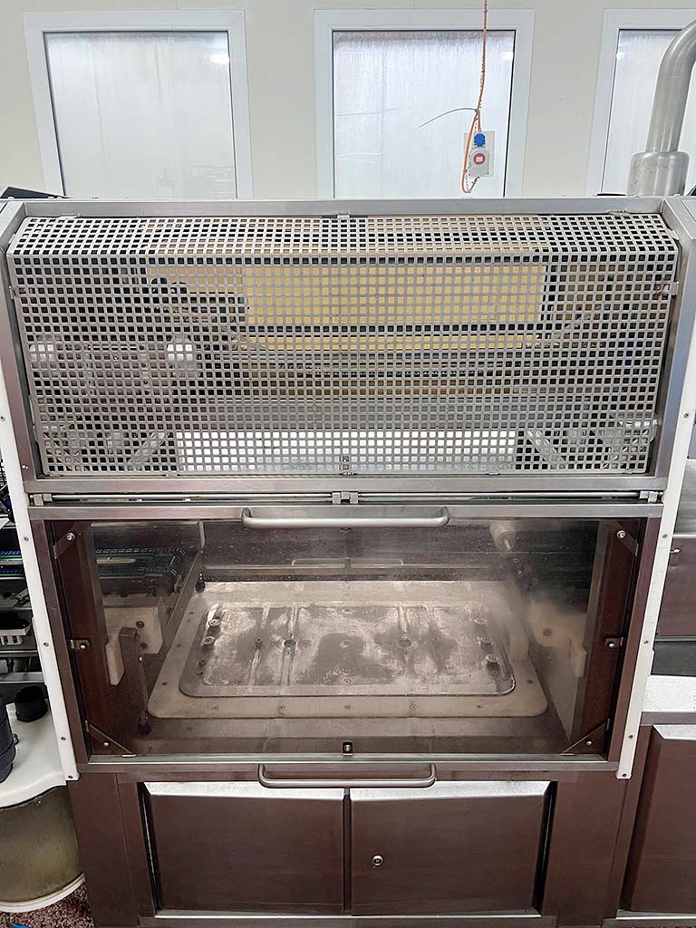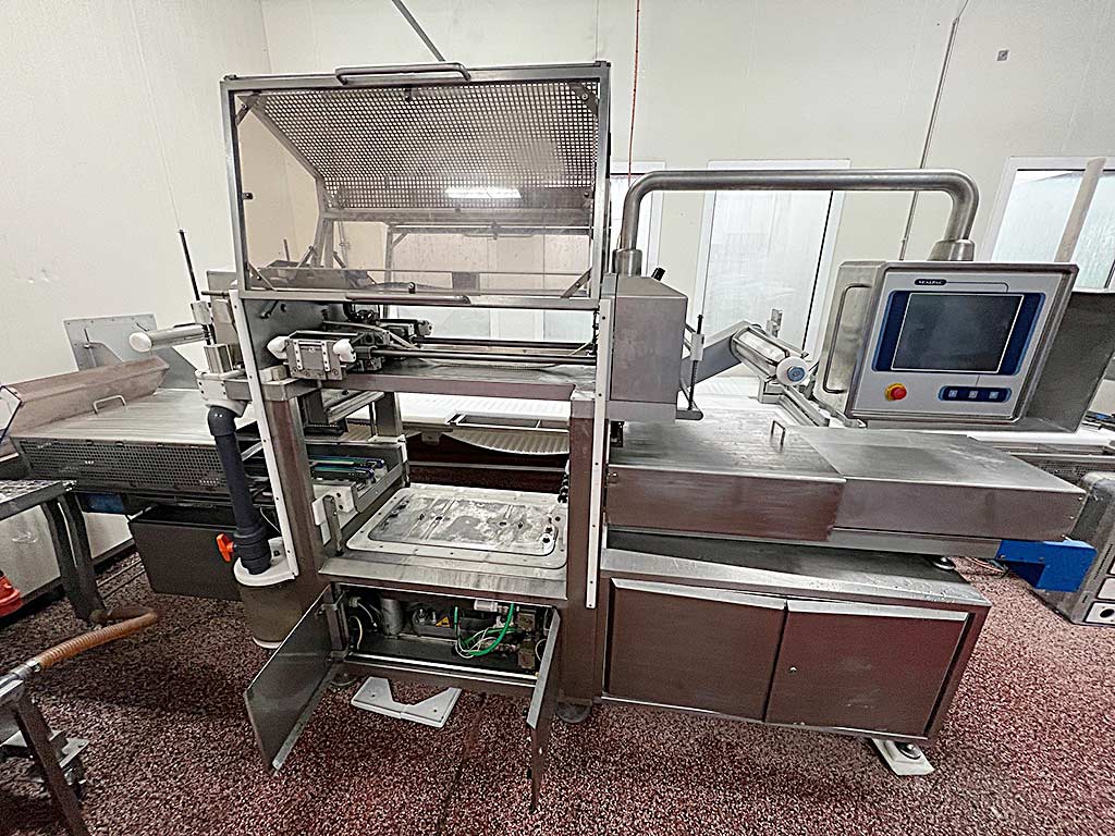 | Beschreibung Eine vollautomatische Schalen-Versiegelungsmaschine Sealpack steht zur Verfügung. Verpackungsleistung: 10-12Takte/min, max. Folienbreite: 420mm, max. Werkzeugtemperatur: 210°C, max. Siegelwerkzeuggewicht: 150kg, max. Versiegelungsdimensionen X/Y: 280mm/345mm, max. Schalenhöhe: 120mm, max. Folienrollendurchmesser: 400mm, max. Folienkerndurchmesser: 3Zoll, max. Rollengewicht: 65kg, Verschließdruck: 1450kg, Werkzeugwagendimensionen X/Y/Z: 1100mm/950mm/1400mm. Maschinendimensionen X/Y/Z: ca. 3150mm/800mm/1700mm, Gewicht: ca. 1600kg. Inklusive eines Werkzeugwagens. Dokumentation vorhanden. Eine Besichtigung vor Ort ist möglich. |