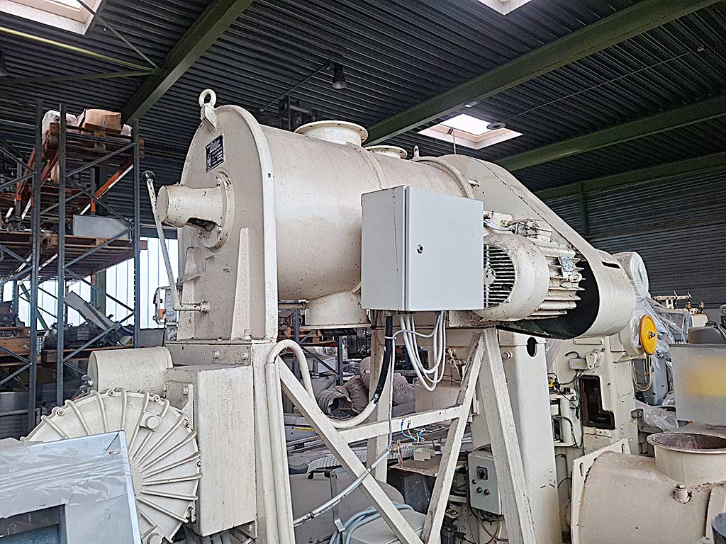 | Beschreibung Ein horizontaler Pflugscharmischer Gebrüder Lödige steht zur Verfügung. Gesamtvolumen: 300l, Nutzvolumen: 225l, Mischkammerdurchmesser: 640mm, Mischkammerlänge: 1000mm, Einfallöffnungsdurchmesser: 250mm, Bodenfreiheit: 800mm, Maschinenabmessungen X/Y/Z: ca. 2500mm/1500mm/2200mm, Gewicht: ca. 500kg. Eine Besichtigung vor Ort ist möglich. |