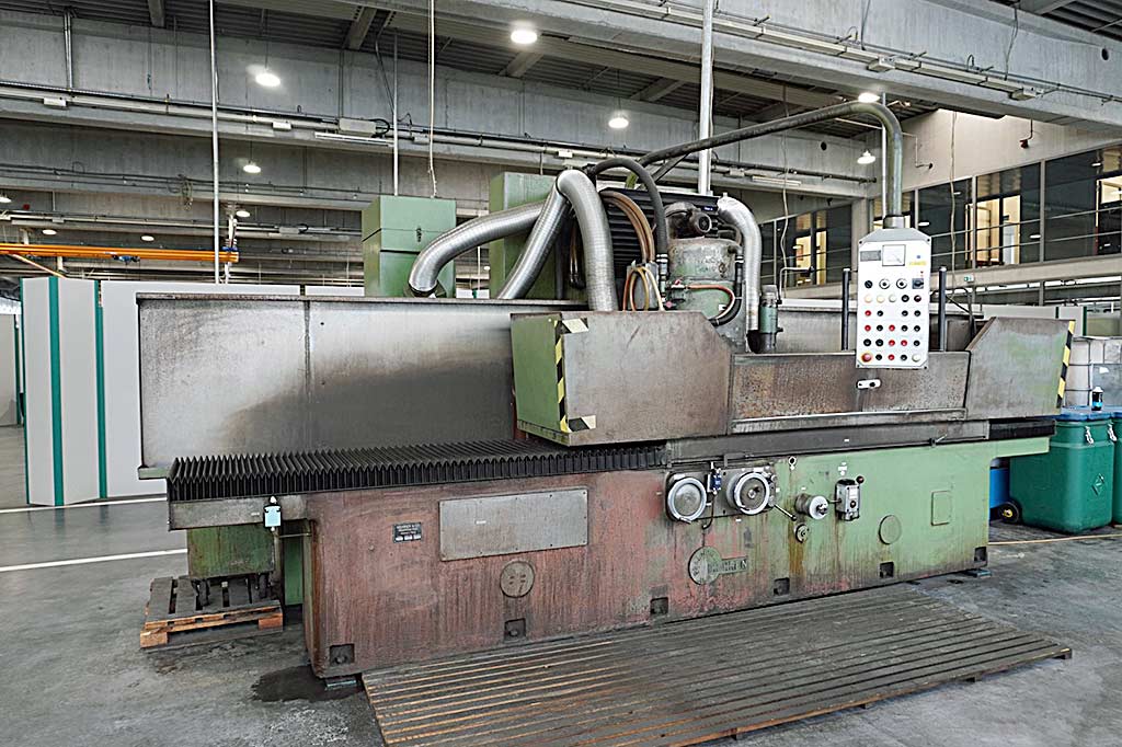 | Beschreibung Schleiflänge: 1500mm, Schleifbreite: 400mm, max. Arbeitshöhe: 500mm, Senkrechtbewegung: 520mm, Tischdimensionen X/Y: 1600mm/350mm, Tisch-Längsbewegung: 2050mm, Schleifsegmente: 12, Schleifsegmentdimensionen X/Y/Z: 80mm/25mm/150mm, Maschinendimensionen X/Y/Z: ca. 6100mm/2400mm/2250mm, Gewicht: ca. 8500kg. Dokumentation vorhanden. Eine Besichtigung vor Ort ist möglich. |