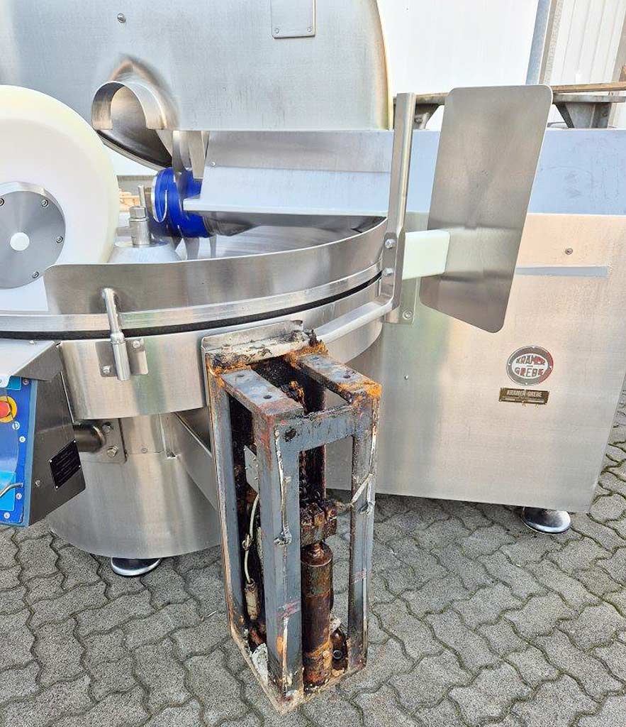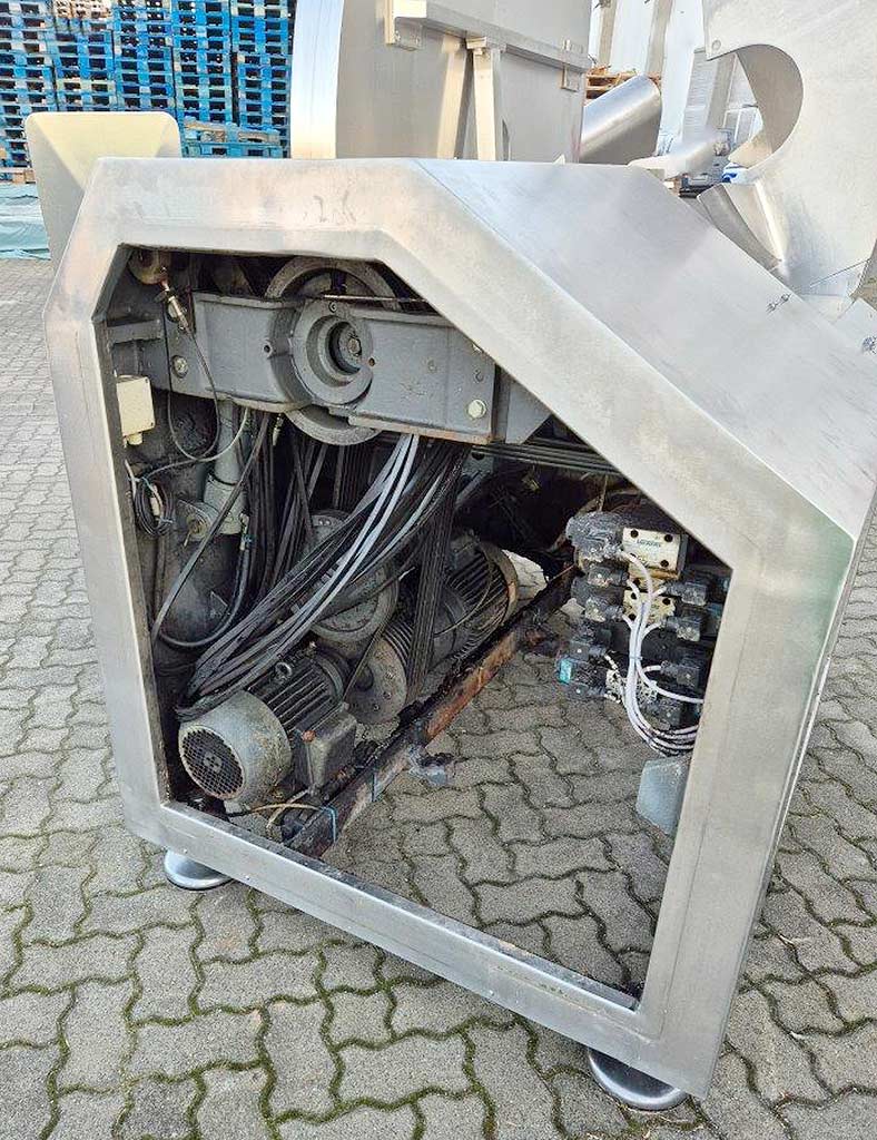 | Beschreibung Ein Rotationskutter Krämer & Grebe steht zur Verfügung. Schüsselvolumen: 325l, Messerdrehzahl: 3000U/min, Messergeschwindigkeit: 120m/s, Dampfdruck: 2-4bar, Dampftemperatur: 120°C-150°C, Garungstemperatur: 65°C-85°C, Kühltemperatur: 45°C-50°C, Maschinendimensionen X/Y/Z: ca. 3000mm/2250mm/2050mm, Gewicht: ca. 4300kg. Inklusive Zubehör wie Messer, Kunststoffteile und Montageschlüssel. Die Maschine ist demontiert und der Schaltschrank und der Motor sind in der Halle gelagert. Eine Besichtigung vor Ort ist möglich. |