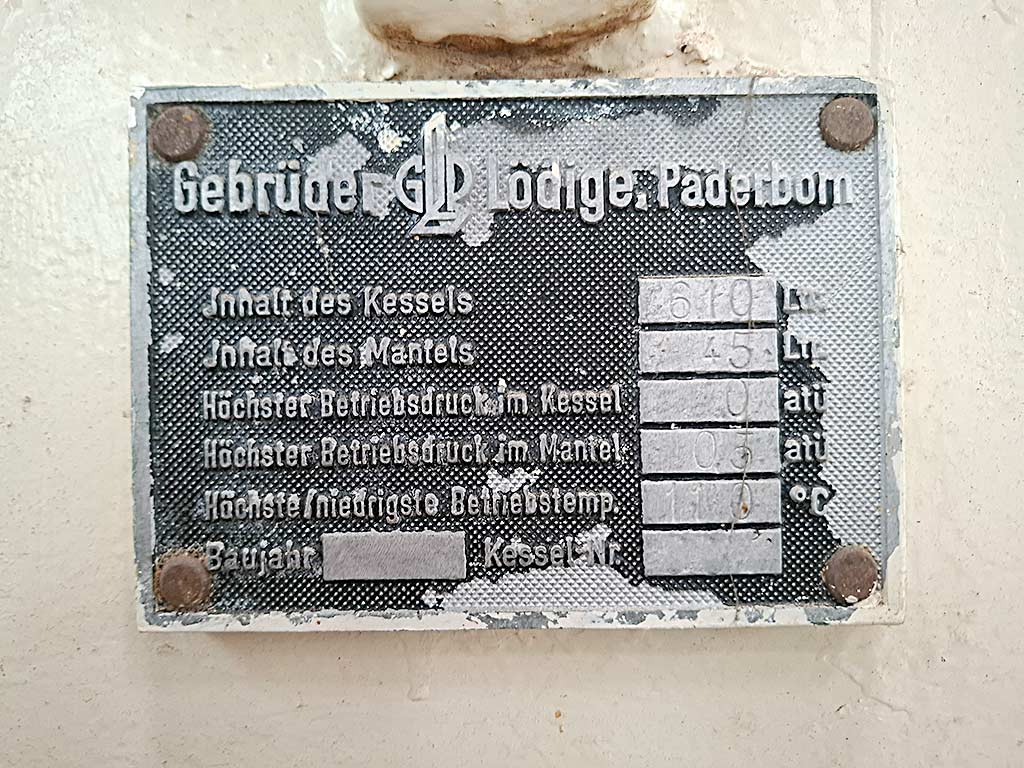 | Beschreibung Eine kompakte Dampfkesselanlage Gebrüder Lödige steht zur Verfügung. Kesselinhalt: 610l, Mantelinhalt: 45l, max. Kesselbetriebsdruck: 1bar, max. Mantelbetriebsdruck: 1,5bar, max. Betriebstemperatur: 110°C. Inklusive Steuerungskasten. Eine Besichtigung vor Ort ist möglich. |
