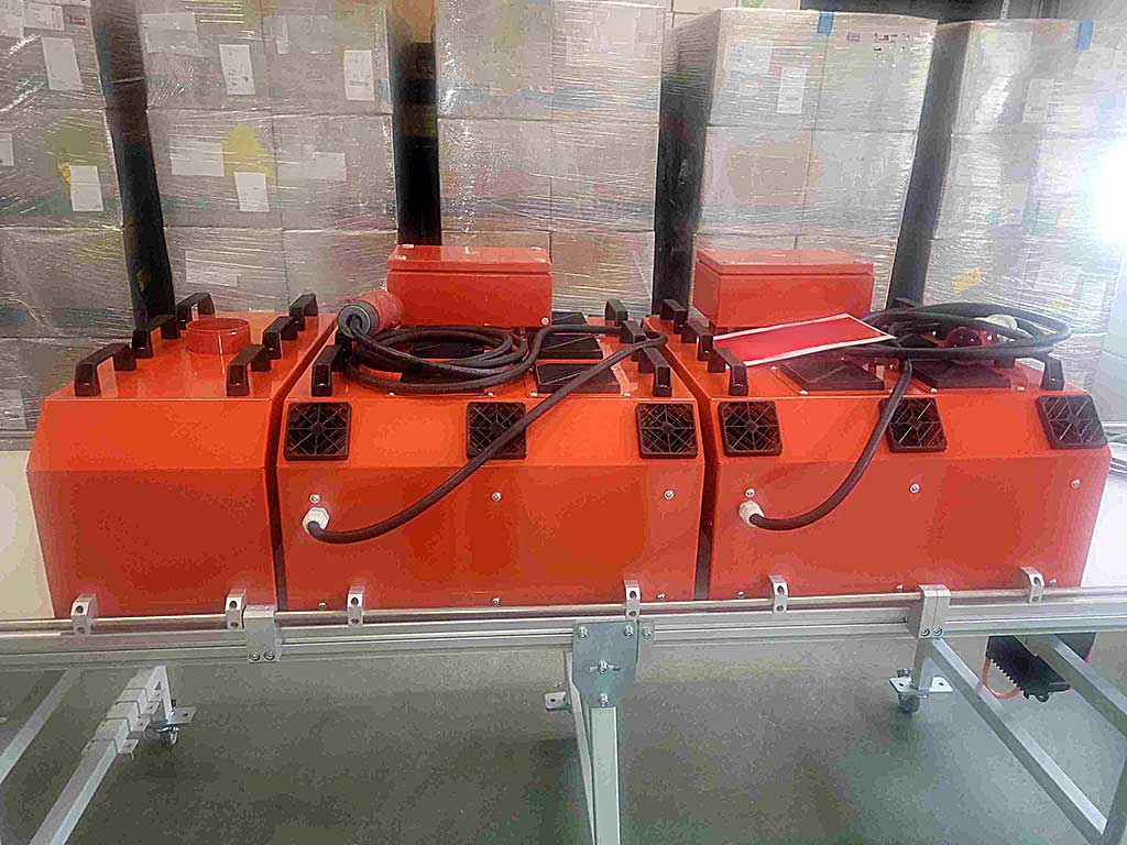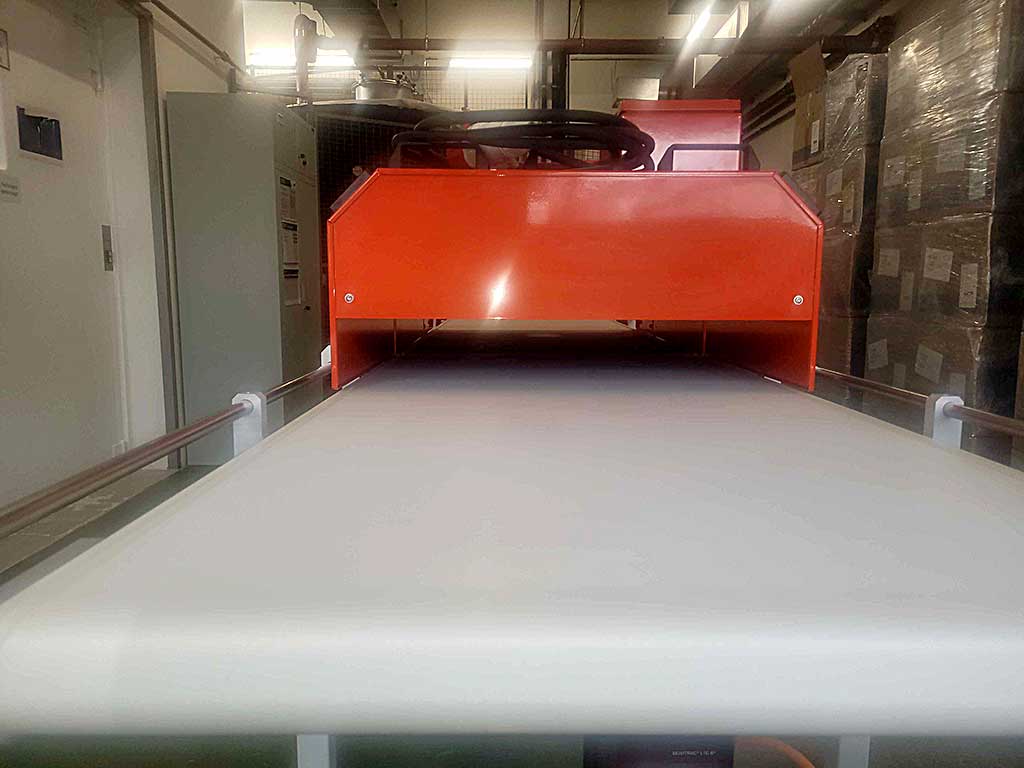 | Beschreibung Angeboten wird ein Durchlauftrockner/Trocknungsanlage: Trocknungseinheiten: Alraun Infrarot- und Warmlufttunnel, Transportsystem: Alraun Relingband TB70x300 (Modell 2233), Infrarot-Trocknung (Modell IR70x60/250C/2109): IR-Strahlungswärme, digitaler Temperaturregler A-Senco TR-85, einstellbarer oberer Alarmwert (uPal) bis 300°C, Warmluft-Trocknung (Modell WL70x60/150C/480m³/h/2208): Konvektionswärme/Warmluft, Luftleistung: 480m³/h, Temperaturbereich: kontrollierte Wärme bis ca. 150°C, Transportsystem: Alraun Relingband TB70x300 (Modell 2233): Antrieb: SEW-EURODRIVE Getriebemotor, Steuerung: MOVITRAC®-LT Frequenzumrichter stufenlose Geschwindigkeitsregulierung, Abmessungen X/Y ca. 700mm/3000mm, Besichtigung nach Absprache möglich. |
