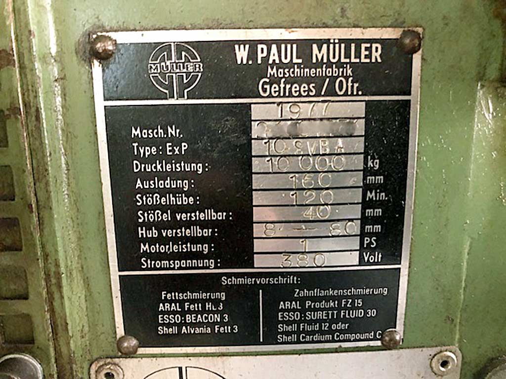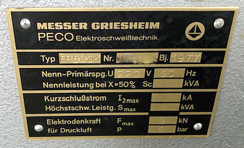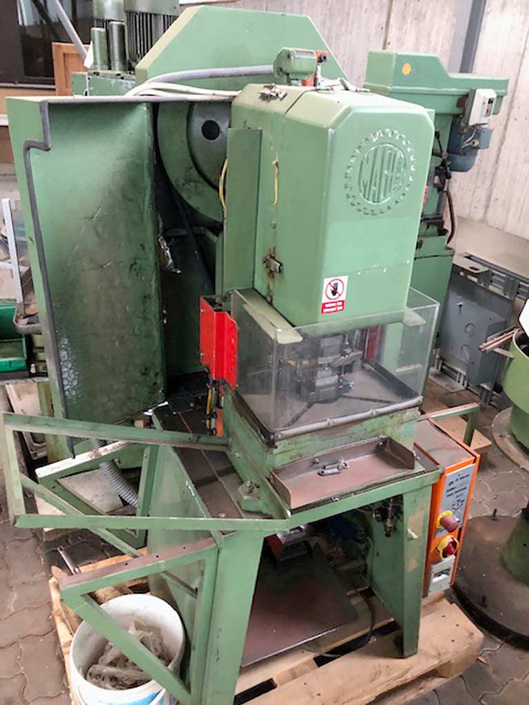 | Beschreibung Diverse Gebrauchtmaschinen für die Metallverarbeitung stehen zur Verfügung. 1) Exzenterpresse Müller ExP 10.SVBA, Baujahr: 1977, Presskraft: 10t, Ausladung: 160mm, Hubzahl: 120/min, Stößelverstellung: 40mm, Hubverstellung: 72mm, Gewicht: ca. 800kg. 2) 3x Haspel Soprem SOP/20, Baujahr: 1992/1992/1998, Tragkraft: 100kg, max. Spulen-Außendurchmesser: 850mm, max. Bandbreite: 100mm, Drehzahl: 22U/min. 3) Schweiß-Verschlussanlage Messer FP500K, Baujahr: 1977, Ausladung: 165mm. 4) Einziehmaschine Felss FR16-V, Baujahr: 2002, max. Rohrdurchmesser: 16mm, Stauchwellendrehzahl: 342U/min. Eine Besichtigung vor Ort ist möglich. |