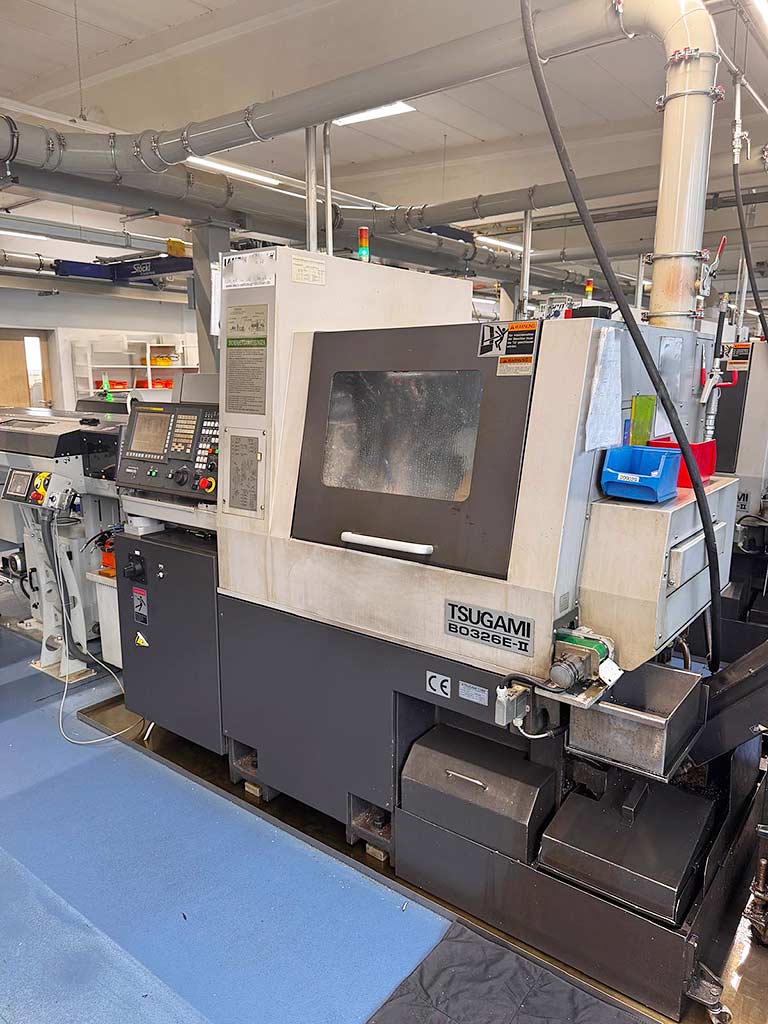 | Beschreibung Drei bauähnliche CNC-Schweizerdrehmaschinen Tsugami stehen zur Verfügung. Baujahre: 2014/2016/2016, max. Stangendurchlass: 32mm, max. Bearbeitungslänge: 320mm, max. Bohrdurchmesser Hauptspindel/Gegenspindel: 12mm/10mm, Drehzahl: 8000U/min, Werkzeugplätze: 31, max. Schlitzfräserdurchmesser: 45mm, Eilgang Z: 32m/min, Eilgang X/Y: 24m/min, Auflösung: 0,1mm. Maschinendimensionen X/Y/Z: ca. 2150mm/1300mm/2050mm, Gewicht: ca. 3500kg, Steuerung: Fanuc, Laufzeiten 1/2/3: ca. 12265h/39970h/39470h. Dokumentation vorhanden. Eine Besichtigung vor Ort ist möglich. Einzelverkauf möglich, jedoch ist ein Paketverkauf bevorzugt. |