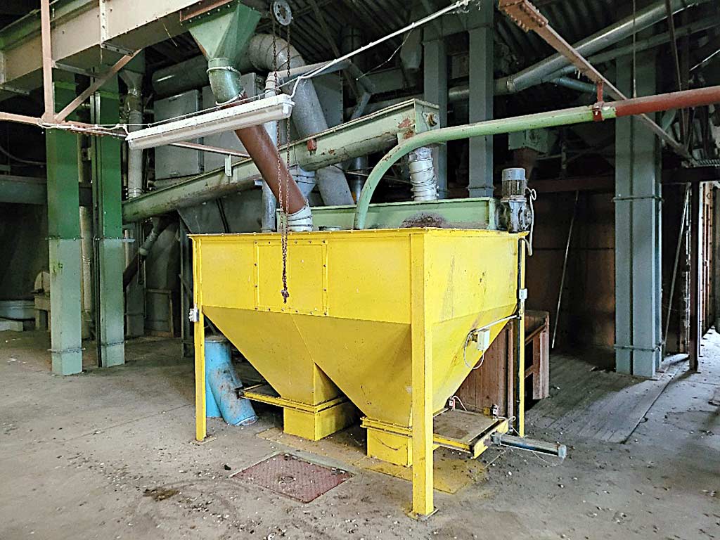 | Beschreibung Eine Tiermischfutterlinie steht zur Verfügung. 1) Hammermühle Bühler. 2) Futterwürfelpresse Bühler DPAB, Baujahr: 1979. 3) Schnelldampferzeuger Loos, Baujahr: 2000, Leistung: 300kg/h, max. Betriebsüberdruck: 13bar. 4) Wiege- und Mischeinrichtung Gebrüder Jensen, Baujahr: 1979. Inklusive der dazugehörigen Redler und Elevatoren. Dokumentation vorhanden. Eine Besichtigung vor Ort ist möglich. Einzelverkauf nach Absprache möglich. |