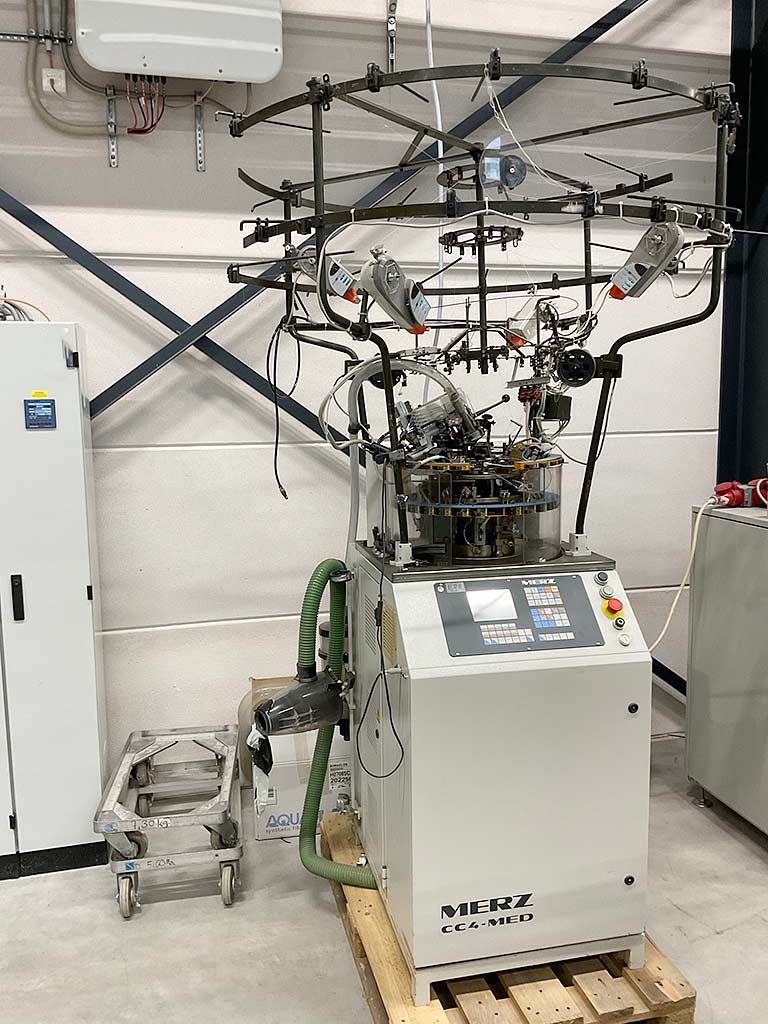| Beschreibung Eine medizinische Einzylinder-Rundstrickmaschine Merz für Kompressionsstrümpfe steht zur Verfügung. Stricksysteme: 4, Zylinderdurchmesser: 3,75 Zoll, Nadelanzahl: 400, Stricktechnik: 2-Zug-System, Feinheit: E34, Nadeln pro Zoll: 34. Eine Besichtigung vor Ort ist möglich. |