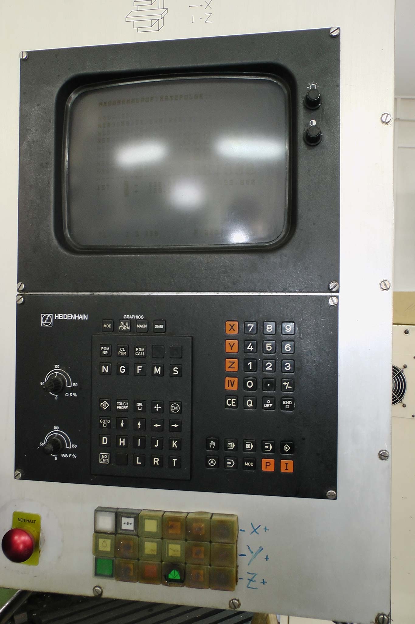 | Beschreibung Drehzahl: 355-1800/min, Nennspannung: 380V, 50Hz, 3 AC, Steuerspannung: 220/24V, Schutzart IP54, Nennstrom: 100A, Steuerung: Heidenhain TNC 355, Gewicht: 2,95t, mit Handrad, Kühlmitteleinrichtung, Schlauchdüse, Hydraulik-/Schmiereinheit, Druckspeicher/ Hydrospeicher, Magnetventile, Bosch-Komponenten und ORSTA-Wegeventil. Eine Besichtigung vor Ort ist möglich. |
