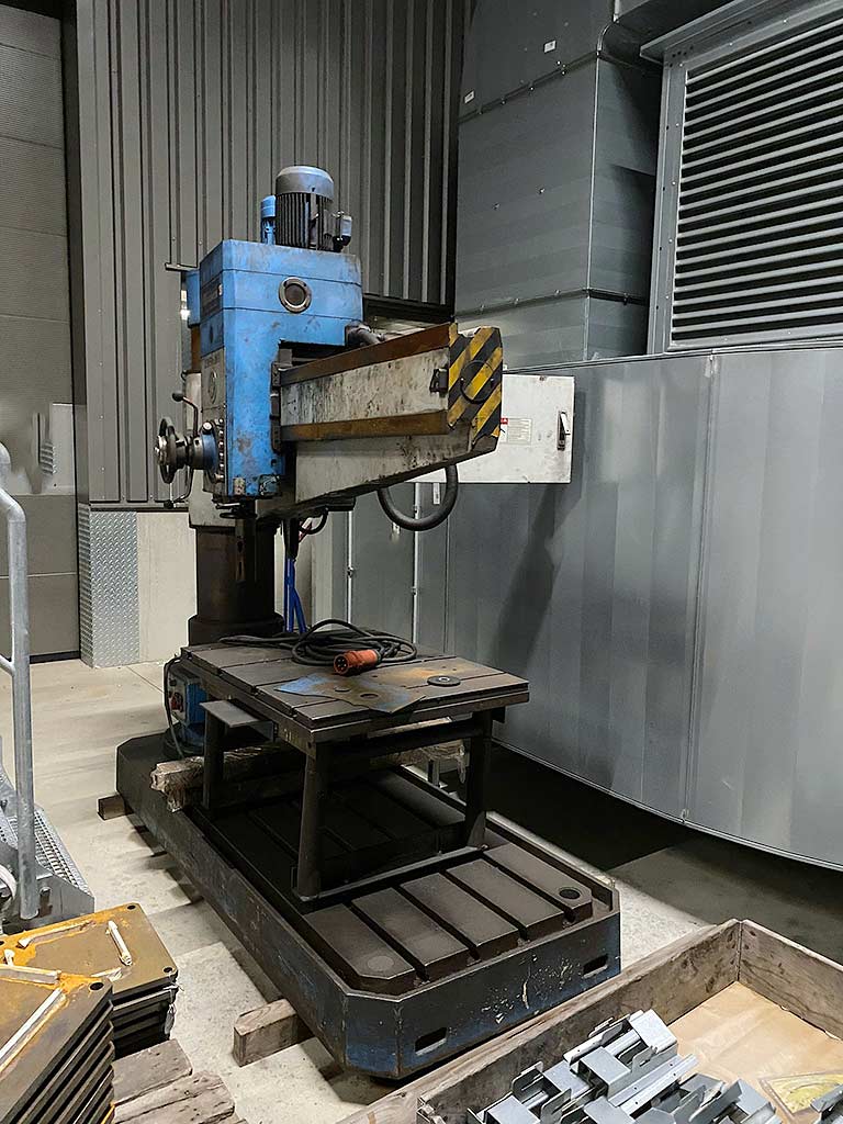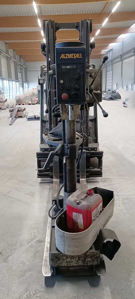 | Beschreibung Diverse Metallbearbeitungsmaschinen, inklusive einer größeren Radialbohrmaschine Wagner, stehen zur Verfügung. 1) Säulen-Radialbohrmaschine Wagner PRC 50, Baujahr: 2011, Bohrleistung (Stahl): 50mm, Spindelhub: 315mm, Ausladungsbereich: 350mm-1600mm, Spindel-Grundplattenabstand: 370mm-1270mm, Drehzahl: 2000U/min, Maschinendimensionen X/Y/Z: ca. 2500mm/1100mm/2900mm, Gewicht: ca. 3500kg. Die Maschine weist einen unbekannten Fehler auf. 2) Säulenbohrmaschine Alzmetall AX3/SV, Baujahr: 2000, Bohrleistung (Stahl): 32mm, Spindelhub: 120mm, Ausladung: 293mm, Säulendurchmesser: 115mm, Tischdimensionen X/Y: 515mm/360mm, Drehzahl: 2250U/min, Gewicht: ca. 300kg. 3) 2x Metallkreissäge Macc NTM 350, Baujahr: 1998/2010, Sägeblattdurchmesser: 350mm, Schnittleistung: 120mm, Gewicht: ca. 450kg. 4) Bandschleifmaschine Grit A/S GIS 150, Baujahr: 2014, Banddimensionen X/Y: 150mm/2000mm, Motorleistung: 4kW, Gewicht: ca. 100kg. Eine Besichtigung vor Ort ist möglich. Ein Paketverkauf ist bevorzugt. |