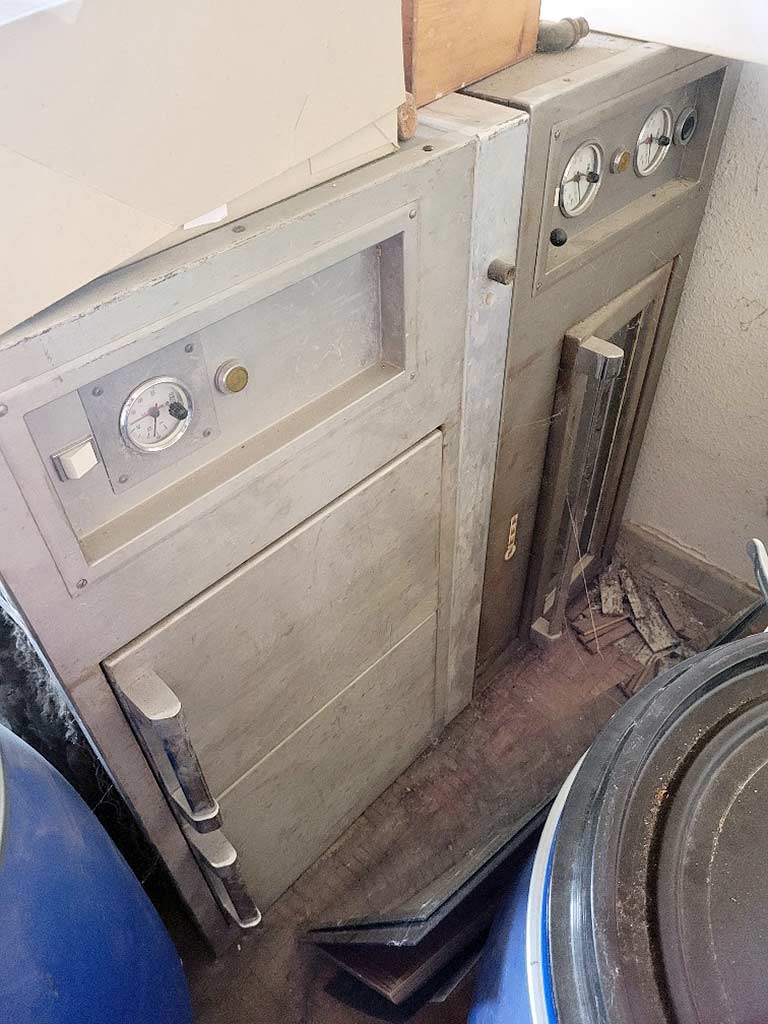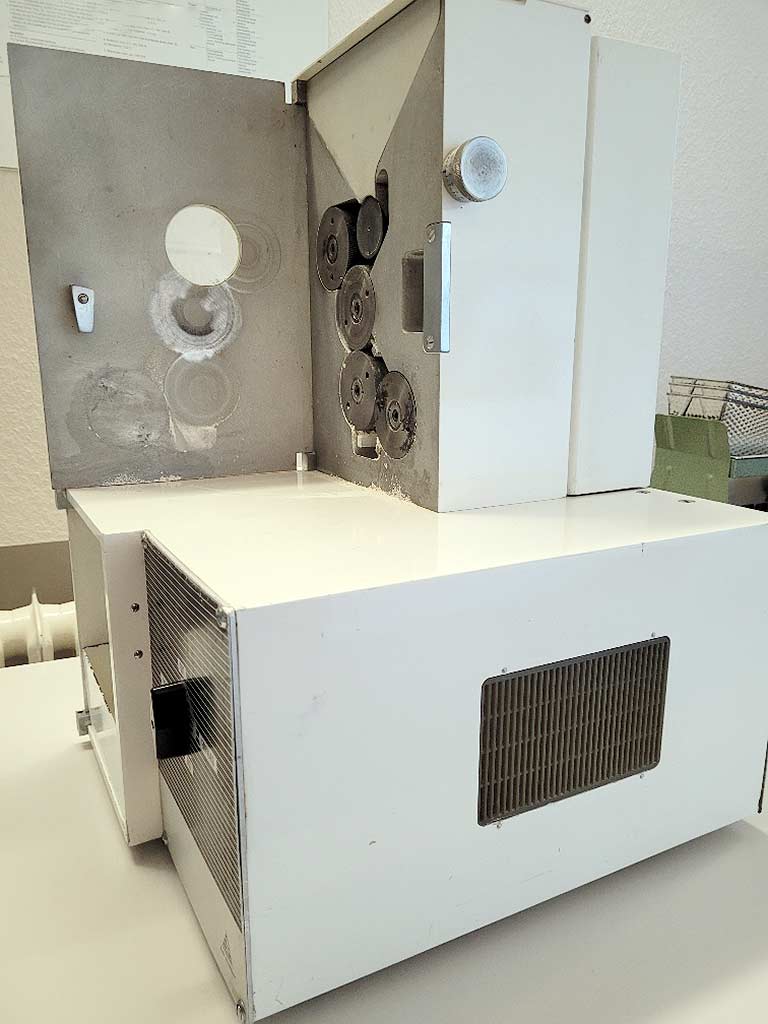 | Beschreibung Diverse alte, jedoch funktionstüchtige, Mess- und Prüfgeräte aus einem Getreidelabor stehen zur Verfügung. 1) Fallzahlmessgerät Perten Falling Number 1402. 2) Probenreiniger A/S Rationel Kornservice Sample Cleaner MLN, Gewicht: ca. 60kg. 3) Labormühle MIM 3100. 4) Hektolitergewicht Louis Schopper mit Waage und Gewichten. 5) Getreidefeuchtemesser Pfeuffer HOH Express HE 90, Baujahr: 1998, Messdauer: ca. 30s. 6) Labormühle Perten LM 3100. 7) Laborofen. 8) Kalibrier- und Temperaturreferenzbad Fluke 7320 High-Precision-Bad, Temperaturbereich: -20°C/150°C, Auflösung: 0,01°C, Baddimensionen X/Y/Z: ca. 170mm/90mm/230mm, Volumen: ca. 9l. Dokumentation vorhanden. Eine Besichtigung vor Ort ist möglich. Ein Paketverkauf ist bevorzugt, jedoch ist ein Einzelverkauf möglich. |