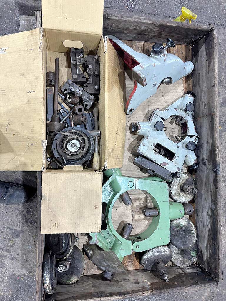 | Beschreibung Eine alte Leit- und Zugspindeldrehmaschine Colchester steht zur Verfügung. Spitzenhöhe: 216mm, Umlaufdurchmesser über Bett/Planschlitten/in der Kröpfung: 432mm/267mm/711mm, Spitzenweite: 2000mm, Spindelbohrung: 76mm, Drehzahl: 1600U/min, Bettbreite: 343mm. Maschinendimensionen X/Y/Z: ca. 3200mm/1100mm/1400mm, Gewicht: ca. 2500kg. Eine Besichtigung vor Ort ist möglich. |