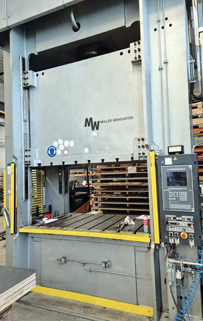 | Beschreibung Eine hydraulische Doppelständer-Ziehpresse, die lediglich als Werkzeugversuchspresse verwendet worden ist, steht zur Verfügung. Presskraft: 2500kN, Hub: 400mm, max. Einbauhöhe: 600mm, Tischdimensionen X/Y: 1250mm/800mm, Ständerweite: 1350mm, Seitendurchgang: 640mm, Tischhöhe: 800mm. Die Maschine bekam in den letzten 12 Jahren einen neuen Bildschirm, eine Hydraulikpumpe, eine Absturzsicherung Sitema, einen Pressenzylinderdichtsatz, einen Ölwechsel. Dokumentation vorhanden. Eine Besichtigung vor Ort ist möglich. |