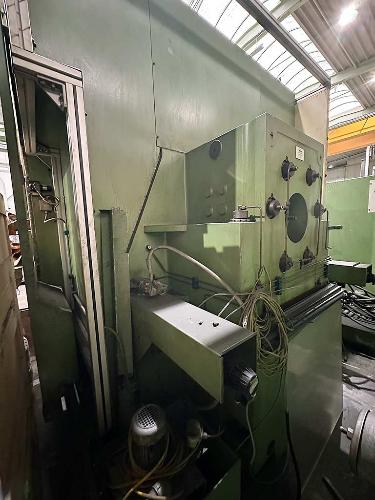 | Beschreibung Eine horizontale CNC-Zahnradschleifmaschine Höfler steht zur Verfügung. Bearbeitungsdurchmesser: 650mm, min. Werkstückdurchmesser: 30mm, max. Zahnradbreite: 530mm, Modulbereich: 1,5-18, max. Schrägungswinkel: 40°, Tischdurchmesser: 490mm, max. Tischbelastung: 1000kg. Maschinendimensionen X/Y/Z: ca. 4500mm/3000mm/3000mm, Gewicht: ca. 22000kg. Inklusive Kühlaggregat Rittal und Absauganlage ISI. Die Maschine befindet sich seit 2010 außer Betrieb. Dokumentation vorhanden. Eine Besichtigung vor Ort ist möglich. |