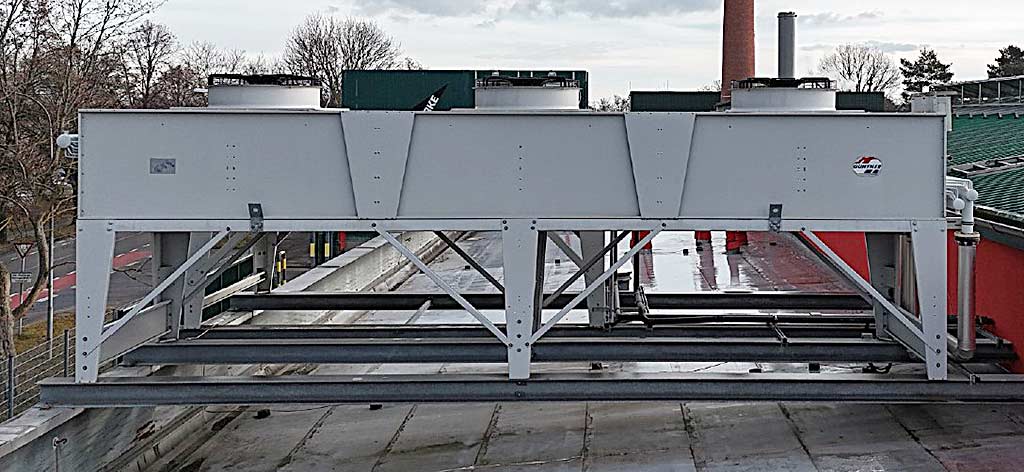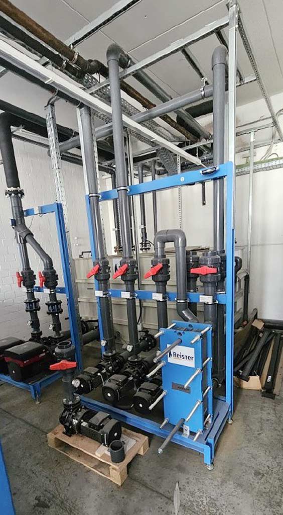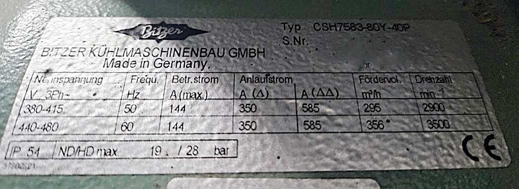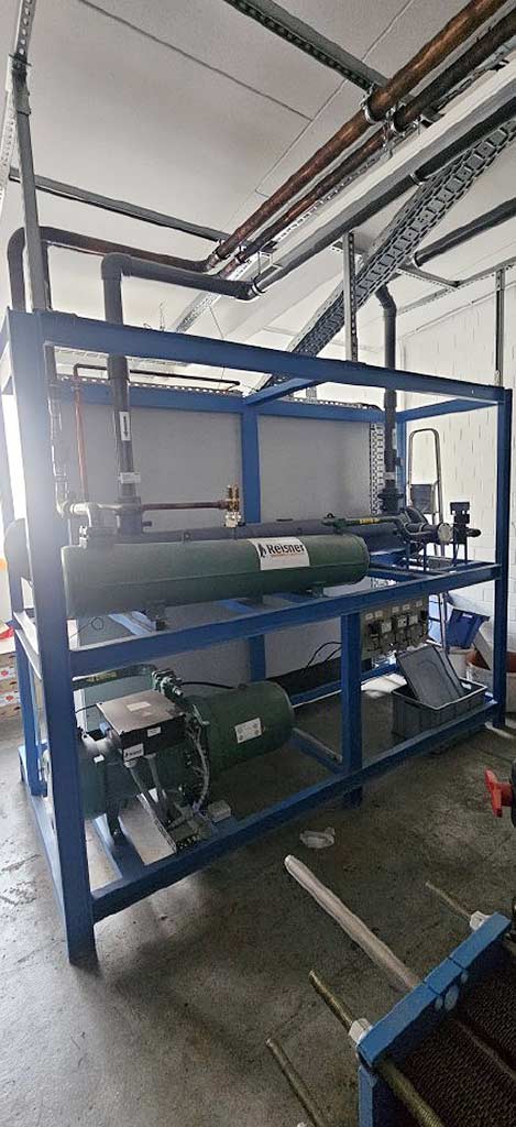 | Beschreibung Ein komplettes Kältesystem Reisner inklusive Wassertank, Trockenkühler und Kondensator steht zur Verfügung. Ausführung: Split-Ausführung, Kältemittel: R513A, Tankvolumen: ca. 3m³, Kälteleistung: 170kW, Medium: Wasser, Mediumtemperatur Ein/Aus: 14°C/10°C, Kondensator-Rückkühlleistung: 230kW, Trockenkühler-Rückkühlleistung: ca. 170kW. Kondensatordimensionen X/Y/Z: ca. 4450mm/2250mm/1500mm, Trockenkühlerdimensionen X/Y/Z: ca. 7050mm/1600mm/1950mm. Dokumentation vorhanden. Eine Besichtigung vor Ort ist möglich. |