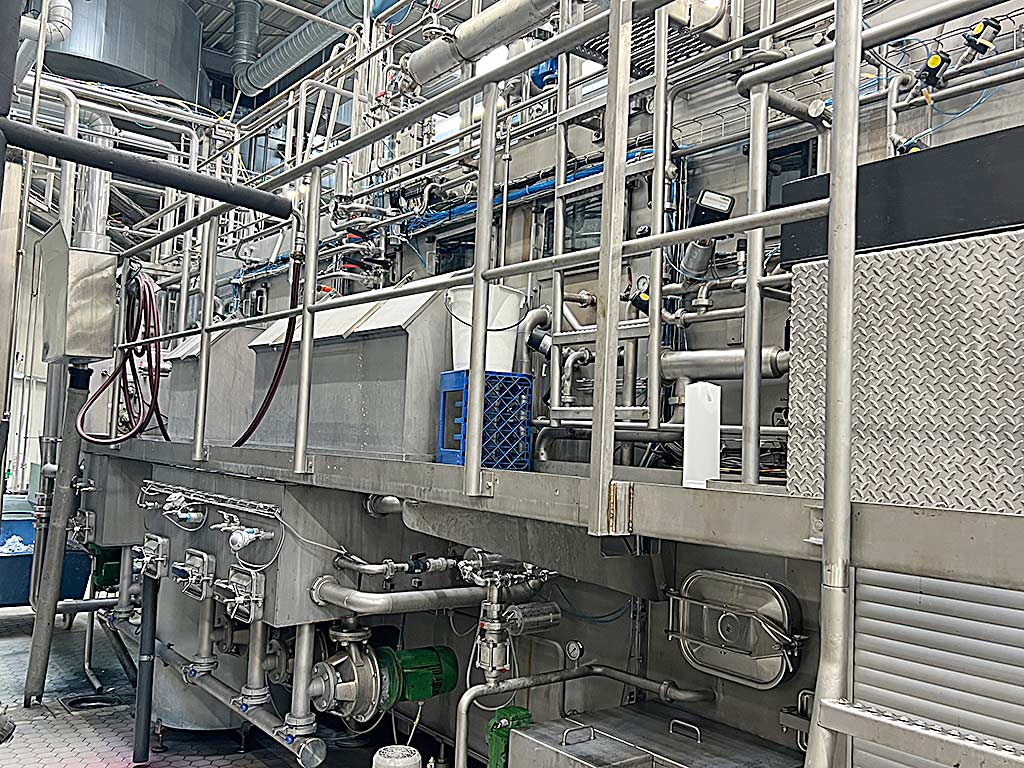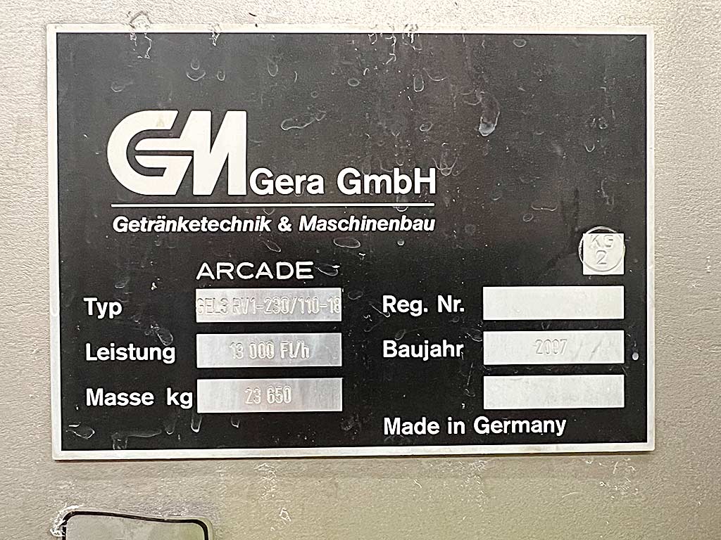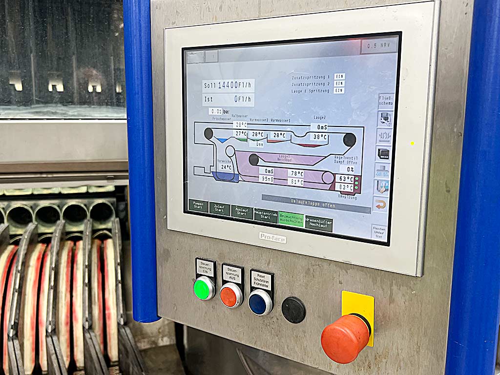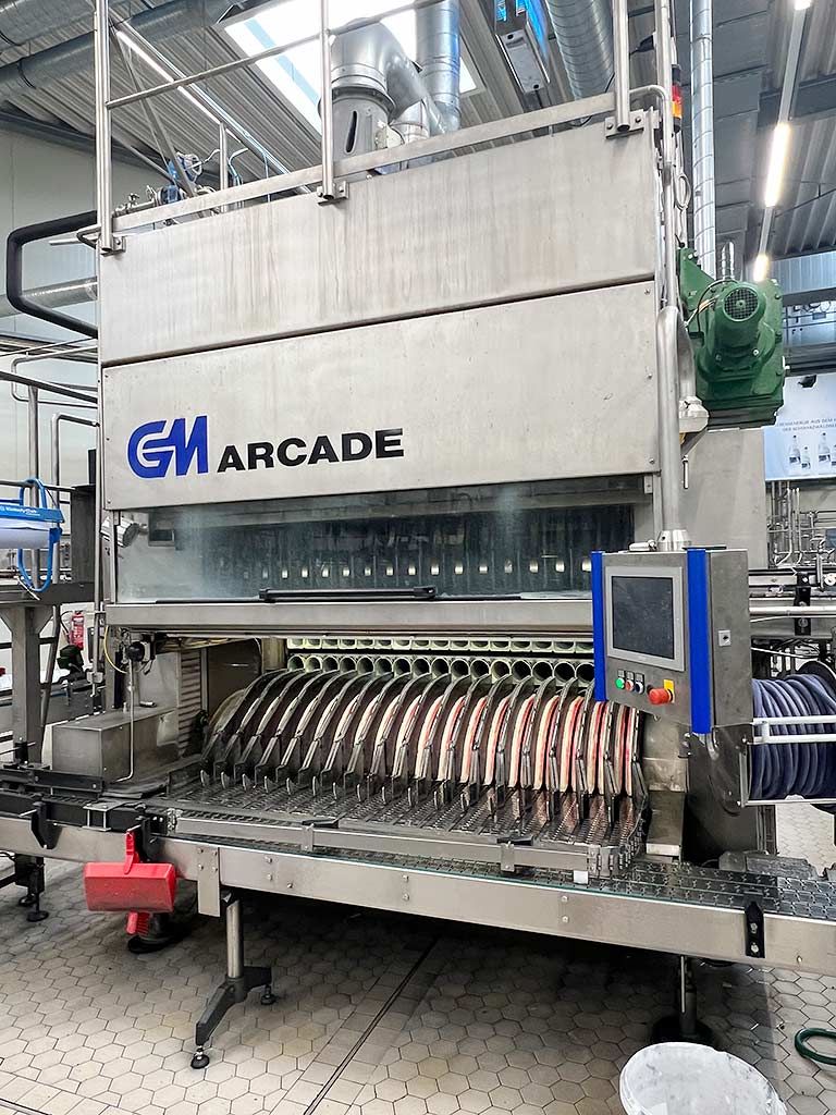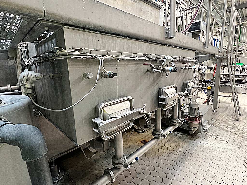Description A GM Gera bottle cleaning system is available. Throughput capacity with 1l PET bottles: 13000 bottles/h, bottle cells: 3240 pieces, cells per basket row: 18, cell pitch: 110mm, chain pitch: 169mm, total treatment time: approx. 15min, total immersion time: approx. 7.5min, housing material: stainless steel (SST). System dimensions X/Y/Z: approx. 8900mm/4200mm/3350mm, weight: approx. 23650kg, operating hours (09.2025): approx. 14300h. Documentation available. An on-site inspection is possible. Expected to be available from mid-March 2026. |