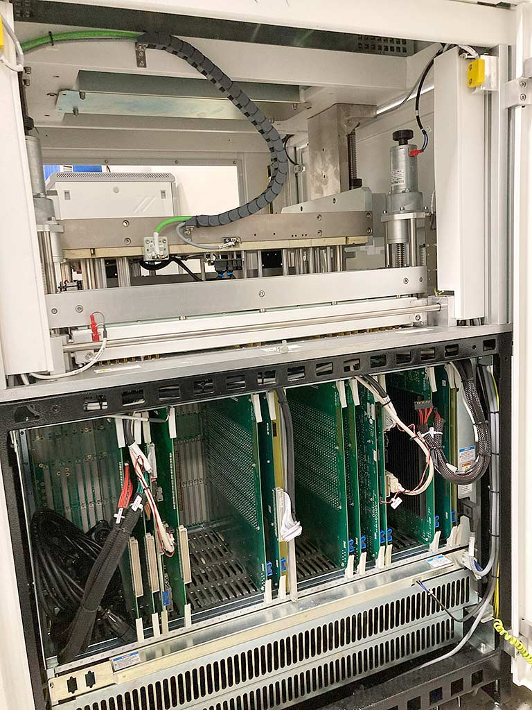 Description A fully automatic SPEA bed-of-nails in-circuit tester for SMEMA production lines is available. Type: inline ICT tester, slots: 2x768/Core, conveyor width range: 50mm-380mm, conveyor length: 450mm, resistance measurement range: 1mΩ-1GΩ, capacitance measurement range: 0.5pF-1F, inductance measurement range: 1µH-1H, dimensions X/Y/Z: approx. 900mm/1000mm/1750mm. Including various feeders (8x2-56). Documentation available. An on-site inspection is possible. |