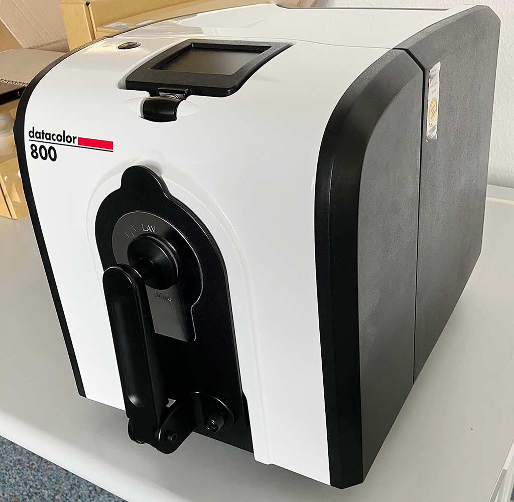 Description A color measurement device Datacolor is available. Measurement geometry: d/8°, illumination system: Dual, integrating sphere diameter: 152mm, wavelength range: 360nm-700nm, wavelength resolution: 2nm, measurement interval: 10nm, photometric range: 0%-200%, spectral analyzer: SP2000. Machine dimensions X/Y/Z: approx. 320mm/340mm/420mm, weight: approx. 17kg. Documentation available. An on-site inspection is possible. |