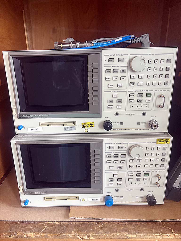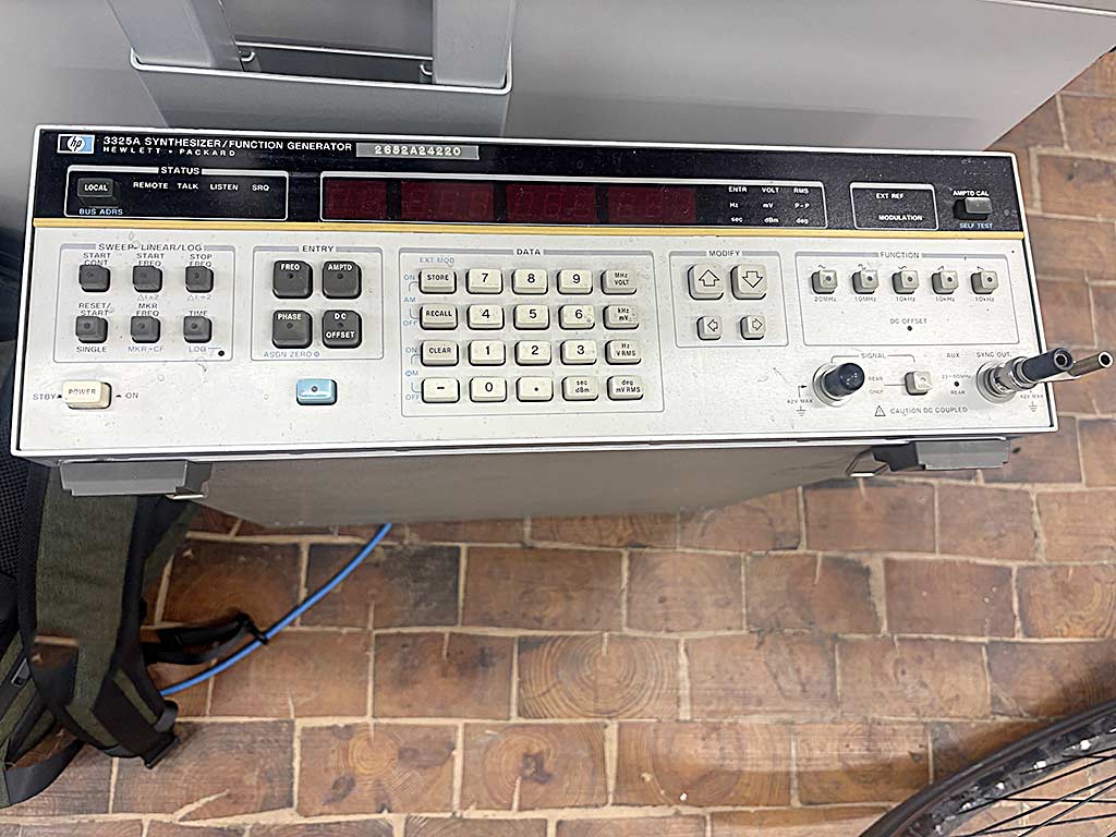 | Description Several vector network analyzers and one synthesizer-based HP function generator are available. 1) 3x HP 8753D, frequency range: 30kHz-6GHz, option: 006, max. dynamic range: 110dB, frequency resolution: 1Hz, output power min./max.: -85dBm/10dBm, power resolution: 0.05dB, input impedance: 50Ohm, measurement types: S-parameters/reflection/transmission/phase/magnitude/group delay, max. sweep speed: 200µs/point. Machine dimensions X/Y/Z: approx. 450mm/200mm/600mm, weight: approx. 25kg. 2) 6x HP 8753D, frequency range: 30kHz-3GHz, option: Standard, max. dynamic range: 110dB, frequency resolution: 1Hz, output power min./max.: -85dBm/10dBm, power resolution: 0.05dB, input impedance: 50Ohm, measurement types: S-parameters/reflection/transmission/phase/magnitude/group delay, max. sweep speed: 200µs/point. Machine dimensions X/Y/Z: approx. 450mm/200mm/600mm, weight: approx. 25kg. 3) HP 3325A, max. frequency range: 21MHz, resolution: 1µHz, max. amplitude: 10V. Machine dimensions X/Y/Z: approx. 450mm/150mm/450mm, weight: approx. 15kg. All devices were calibrated in 2019. Documentation available. On-site inspection possible. |
