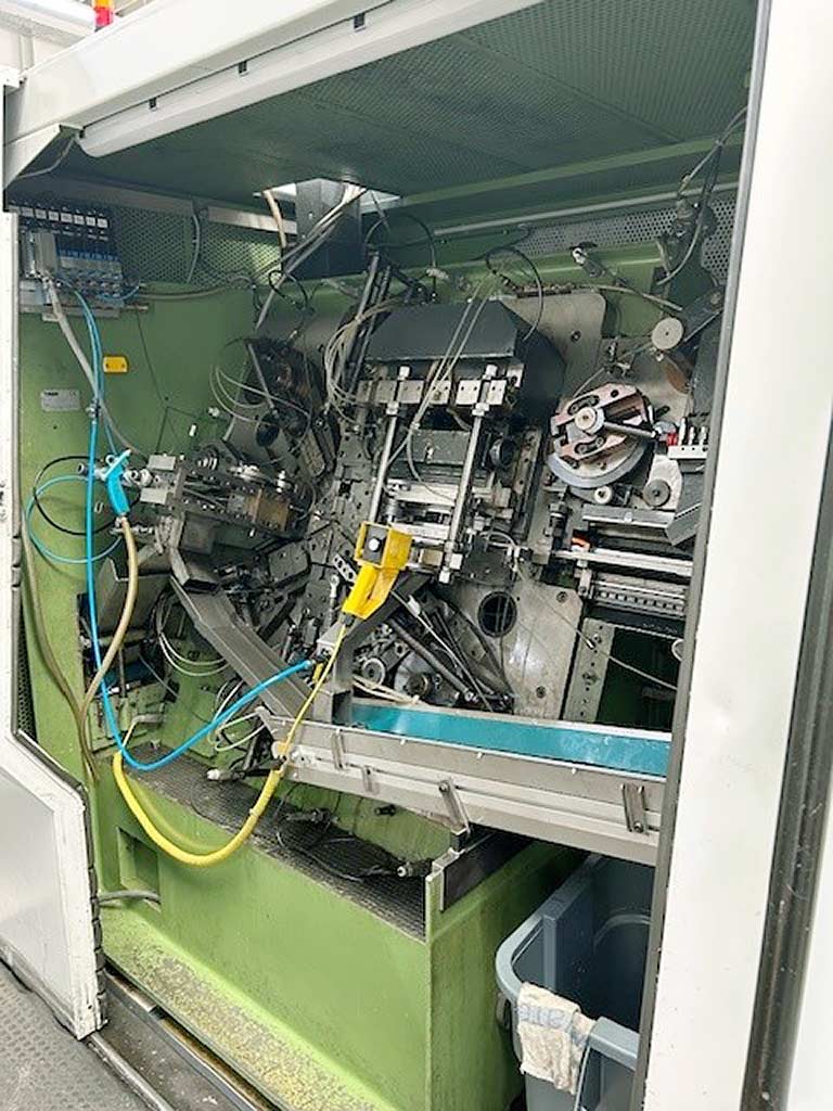 | Description Product diameter range: 0.5mm-5mm, max. strip width: 40mm, max. feed length: 320mm, standard slide units: 4, stroke: 94mm, narrow slide units: 1, stroke: 70mm, center punch stroke: 52mm, max. pressing force: 250kN, eccentric press stroke: 16mm, max. stroke rate: 250strokes/min, max. output rate: 132pieces/min. Machine dimensions X/Y/Z: approx. 2600mm/1500mm/1900mm, weight: approx. 3500kg, control system: Bihler. Documentation available. On-site inspection possible. |