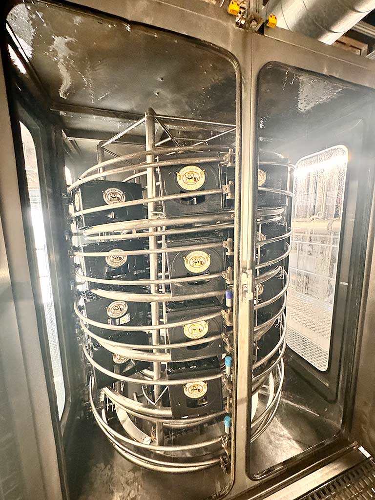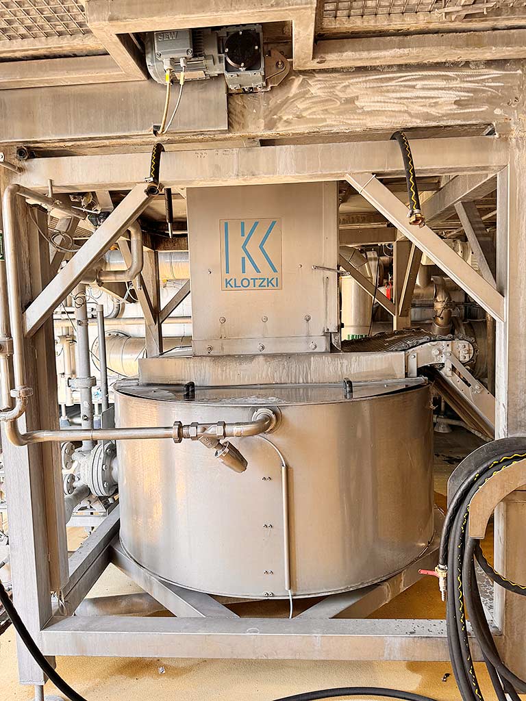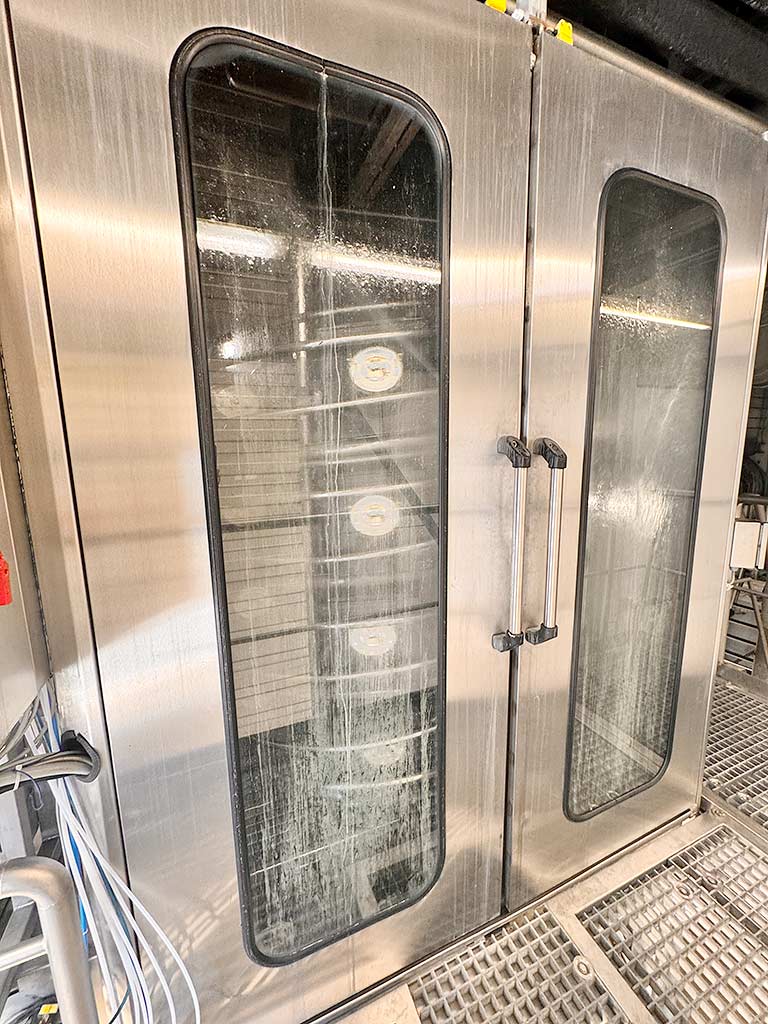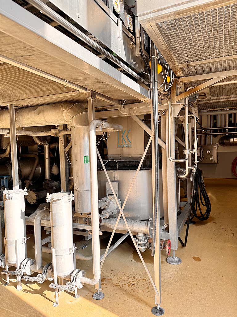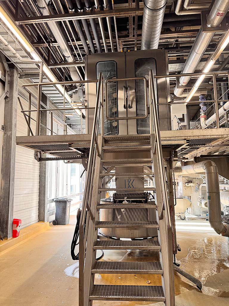 | Description A Klotzki spiral crate washing machine for open plastic beverage crates is available. Crate dimensions X/Y in longitudinal flow: 400mm/300mm, crate dimensions X/Y: 200mm/300mm, crate height range: 270mm-300mm, conveying direction: cross flow, throughput capacity: 1500-2000crates/h, treatment section: approx. 34m, number of units: 48pieces, material: stainless steel, treatment time at 1700 and 2400crates/h: approx. 91s/65s, crate infeed height: 1100mm, crate outfeed height: 4100mm. Machine dimensions X/Y/Z: approx. 3000mm/2000mm/5000mm, weight: approx. 1500kg, control system: Logo. Without platform. The crate indexing and spraying units may need repair. Documentation available. A visit on site is possible. |
