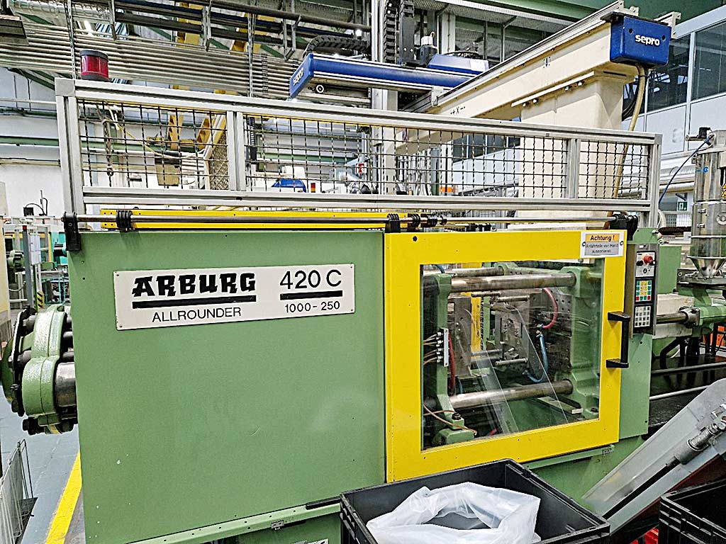 | Description Eight Arburg injection molding machines, one Engel injection molding machine, and one Demag injection molding machine are available. 1) Arburg 270M 350-90, year of manufacture: 1996, operating hours: approx. 110000h. 2) Arburg 270M 350-90 U, year of manufacture: 1998, operating hours: approx. 108000h. 3) Arburg 270M 350-90, year of manufacture: 1992, operating hours: approx. 178000h. 4) Arburg 420C 1000-250, year of manufacture: 1995, operating hours: approx. 96000h. 5) Arburg 370C 800-225, year of manufacture: 1992, operating hours: approx. 156000h. 6) Arburg 320M 500-90, year of manufacture: 1991, operating hours: approx. 94000h. 7) Arburg 270M 350-90 U, year of manufacture: 1998, operating hours: approx. 83000h. 8) Arburg 630S 2500-675, year of manufacture: 2003, operating hours: approx. 93000h. 9) Demag Viva 100-400, year of manufacture: 1999, operating hours: approx. 116000h. 10) Engel ES 500/100 HLS, year of manufacture: 1998, operating hours: approx. 103000h. On-site inspection possible. Sale of individual machines possible. |