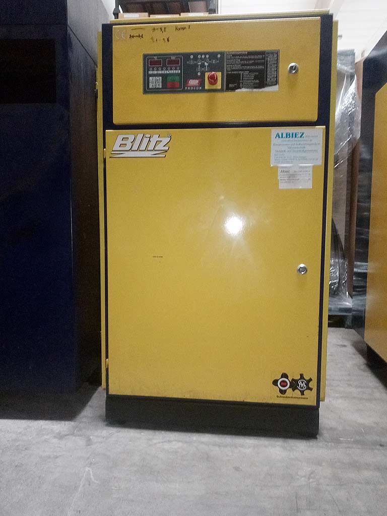 | Description Two identical Blitz compressors are available. Motor power: 22kW, max. operating pressure: 10bar, flow rate: 3m³/min, weight: approx. 500kg. Documentation available. An on-site inspection is possible. |