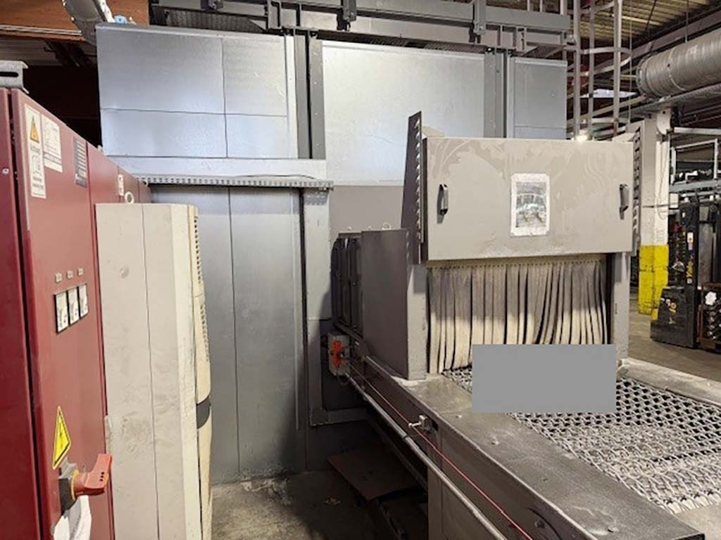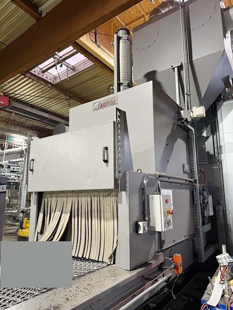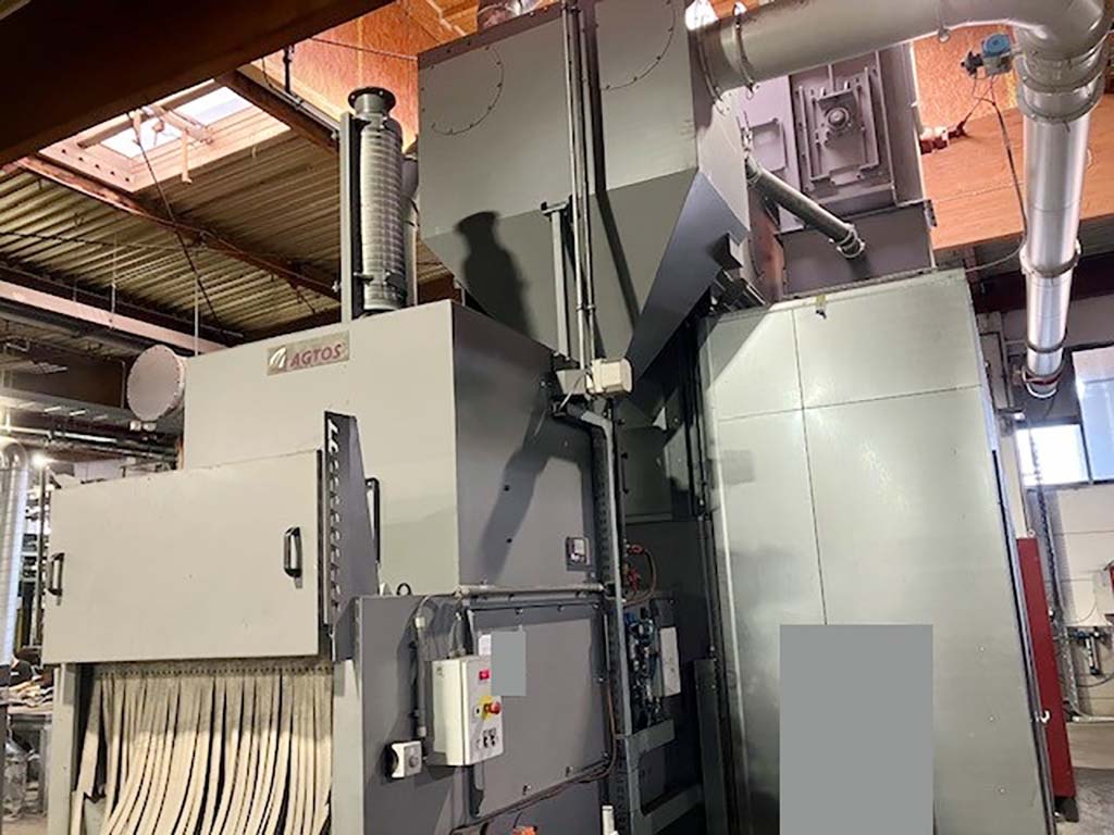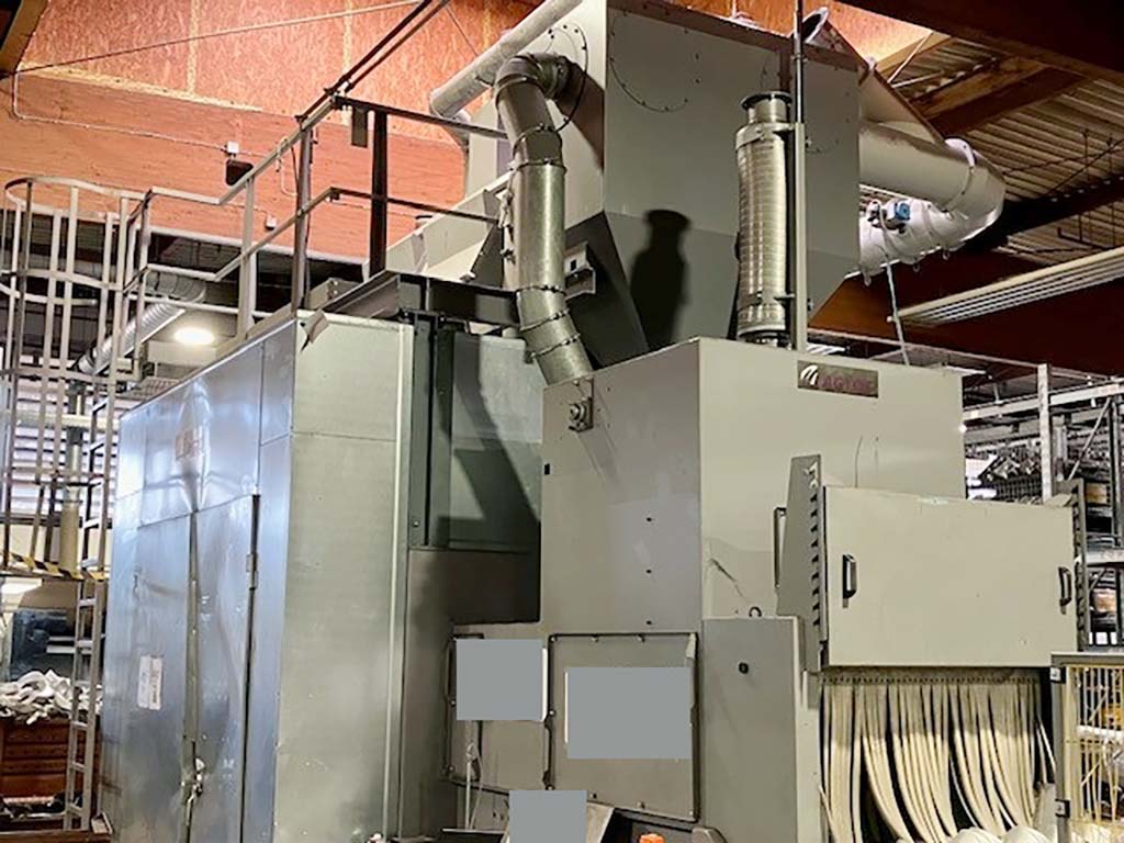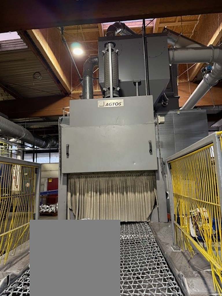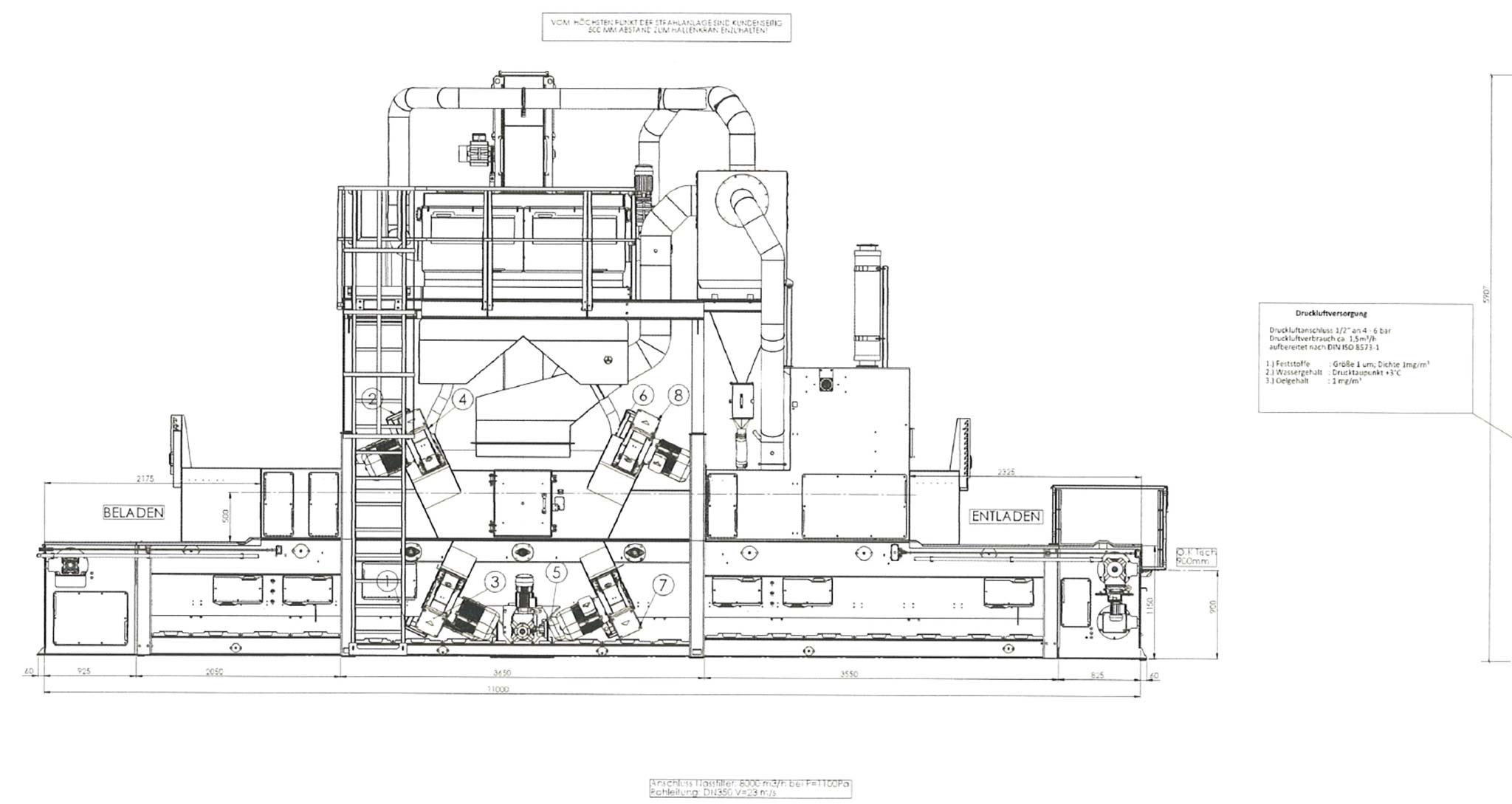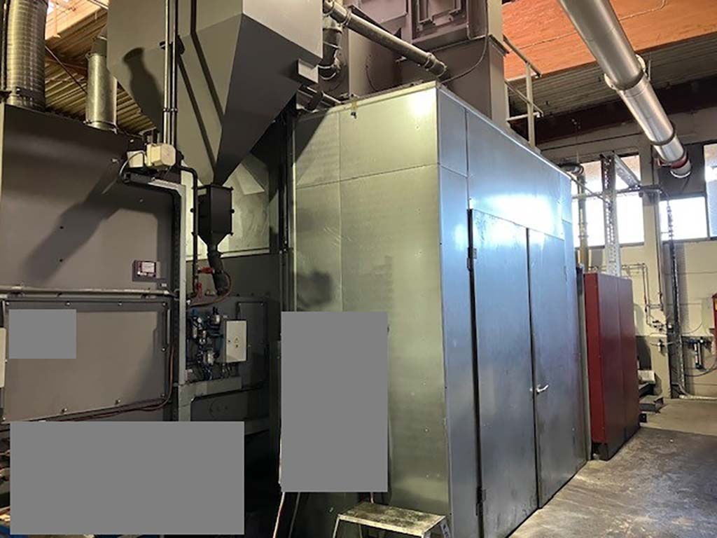 | Description Components: control cabinets, machine body (cabin, turbines, outlet, inlet), platform with processing unit and bunker, sound insulation cabin, impact box, bucket elevator, gratings, ladder, pre-impact box, small parts, piping, cable ducts, blasting media and refill silo, compressed air connection: 1/2 inch at 4–6bar, compressed air consumption: approx. 1.5m³/h, processed according to DIN ISO 8573-1, solid particle size: 1µm, density: 1mg/m³, water content: pressure dew point 3°C, oil content: 1mg/m³, length: 11,000mm, height: 5907mm. An on-site inspection is possible. | |