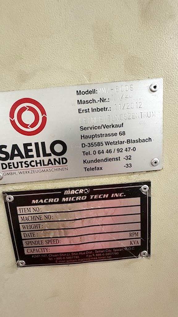 | Description Travel X/Y/Z: 600mm/410mm/500mm, speed: 10000rpm, tool holder: BT-40, tool stations: 24, rapid traverse: 36m/min, table dimensions X/Y/Z: approx. 800mm/450mm, max. table load: 450kg, repeat accuracy: 0.003mm, positioning accuracy: +/-0.005mm. Machine dimensions X/Y/Z: approx. 2000mm/2300mm/2800mm, weight: approx. 3500kg. Documentation available. An on site inspection is possible. |