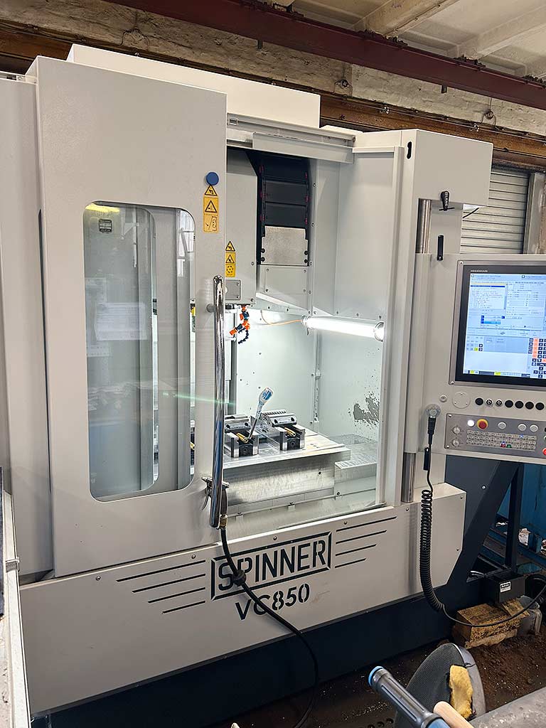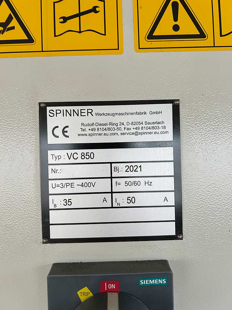 | Description A vertical CNC machining center Spinner is available. Travel X/Y/Z: 850mm/510mm/510mm, speed: approx. 12000rpm, tool holder: SK40, tool stations: 30, rapid traverse: 36m/min, feed rate: 15m/min, table dimensions X/Y: 1000mm/510mm, max. table load: 600kg. Machine dimensions X/Y/Z: approx. 1900mm/1900mm/2450mm, weight: approx. 4500kg, control: Heidenhain TNC, operating hours: 3891h, spindle hours: 702h. Including coolant system, chip conveyor, oil mist extraction and probe. Documentation vorhanden. An on site inspection is possible. |