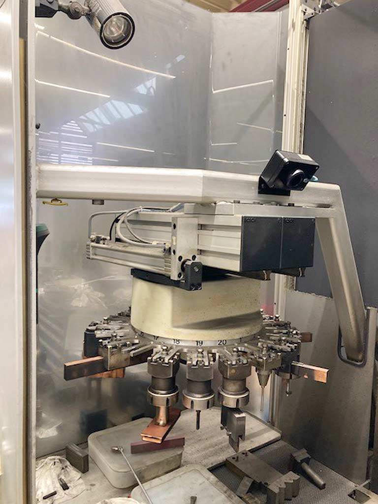 | Description Travel X/Y/Z: 620mm/420mm/400mm, C-axis: 360°, workpiece clamping plate X/Y: 1000mm/600mm, working tank dimensions X/Y: 1070mm/670mm, max. liquid height: 400mm, max. table load: 1500kg, max. electrode weight: 50kg/250kg, pulse generator: EroForm 60A, filling volume: approx. 1200l, tool changer: disc changer, tool positions: 20. Machine dimensions X/Y/Z: approx. 2450mm/2550mm/2450mm, weight: approx. 4500kg, control: EXMF 10, generator hours: approx. 19300h. Documentation available. An on site inspection is possible. |
