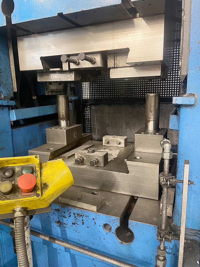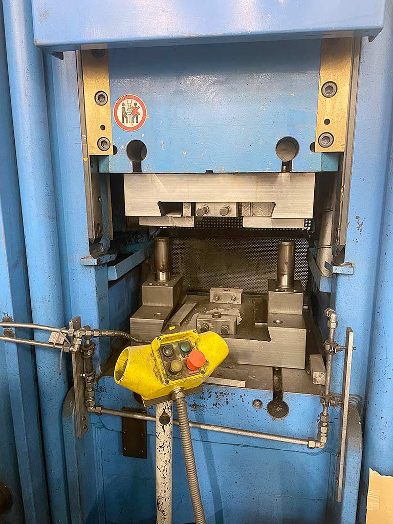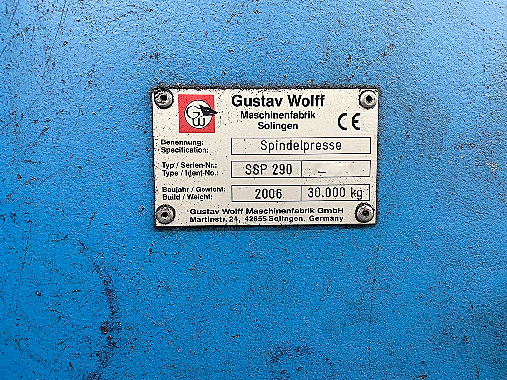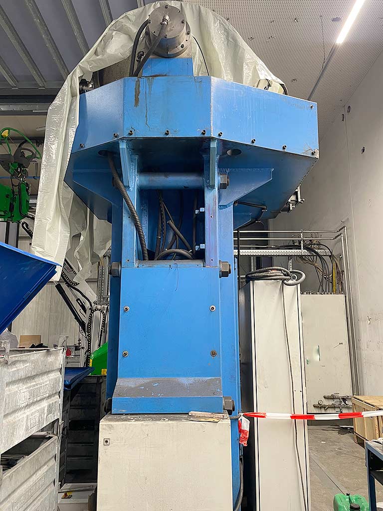 | Description A screw press is available. Working capacity: approx. 64kNm, max. stroke: 250mm, nominal pressing force: 650t, max. pressing force: 750t, impact stroke: approx. 900t. Spindle diameter: 290mm, number of spindle starts: 3, max. stroke adjustment: 150mm, stroke rate: approx. 30min⁻¹. Frame opening: 730mm, max. installation height: 720mm. Ram area X/Y: 700mm/700mm, table area X/Y: 720mm/740mm. Machine dimensions X/Y/Z: approx. 4400mm/3150mm/2000mm, machine weight: approx. 30000kg. Upper and lower platen available. An inspection on site is possible. |