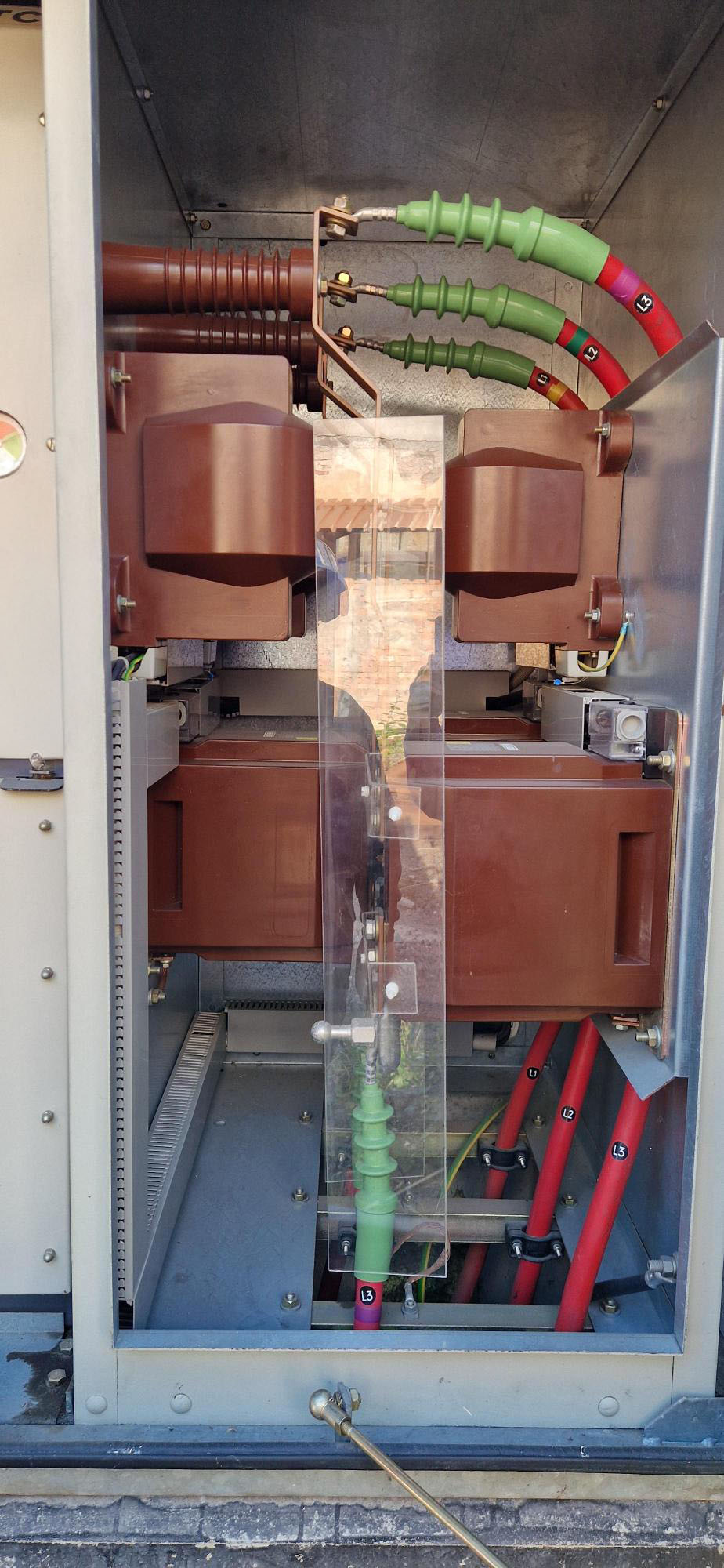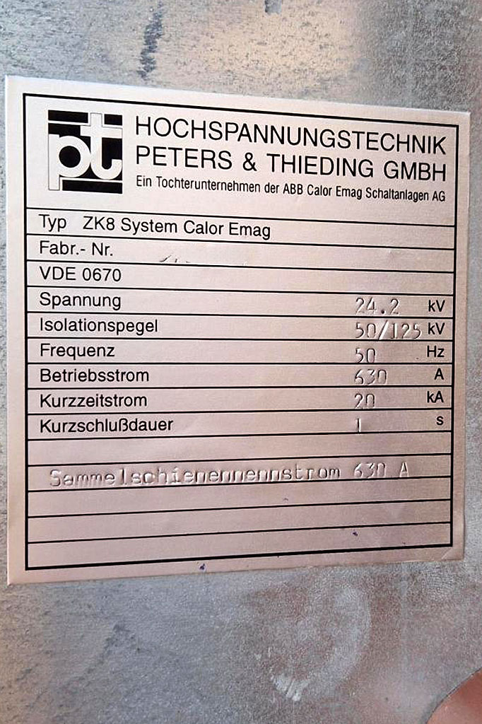 | Description Offered is a high-voltage switchgear device ZK8 System Calor Emag from Peters & Thieding. Year of construction 1994, standard series VDE 0670 (IEC 62271), rated voltage 24.2kV, insulation level 50/125kV, rated frequency 50Hz, operating current 630A, short-time withstand current 20kA, short-circuit duration 1s. Viewing is possible by arrangement. |