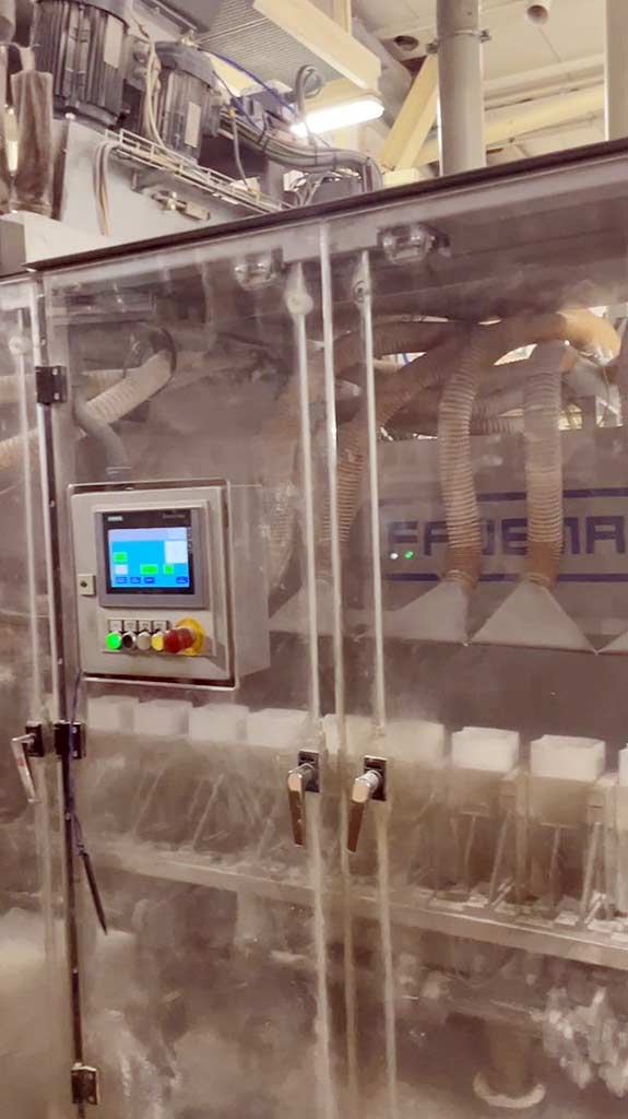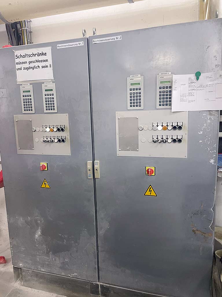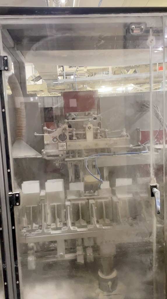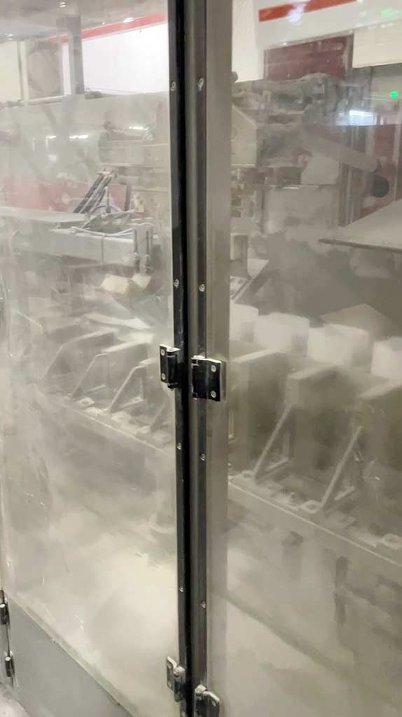 | Description Two interconnected and identical block bag packaging and sealing machines Fawema are available. Nominal packaging output: approx. 110bags/min, realistic packaging output: 70-75bags/min, packaging product: powder/granulate, max. filling weight: 5kg, bag type: block bag, packaging materials: paper/plastic/laminate, min. bag dimensions X/Y/Z: 60mm/40mm/120mm, max. bag dimensions X/Y/Z: 200mm/130mm/500mm. Machine dimensions X/Y/Z: approx. 4500mm/1450mm/2100mm, weight: approx. 2000kg. Documentation available. An on-site inspection is possible. |