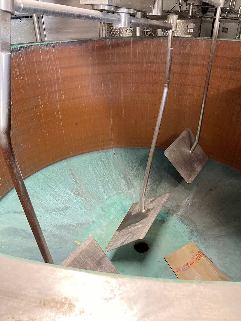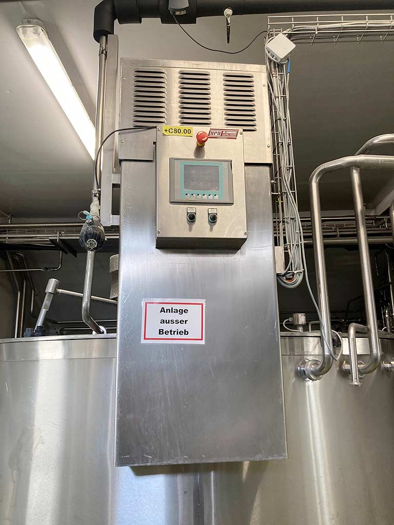 | Description An open copper cheese vat with low material removal and planetary agitator including knife harps and paddles is available. Shape: round, edge material: steel, inner diameter: 2600mm, useful volume: 7000l, outer diameter: 2850mm, height: 2950mm. Cheese mold: 2x4, mold length: 820mm, beam length: 4400mm, whey tub length: 4400mm, total length: 5000mm, width: 1500mm, depth: 900mm. An on-site inspection is possible. The copper was only gently washed. |