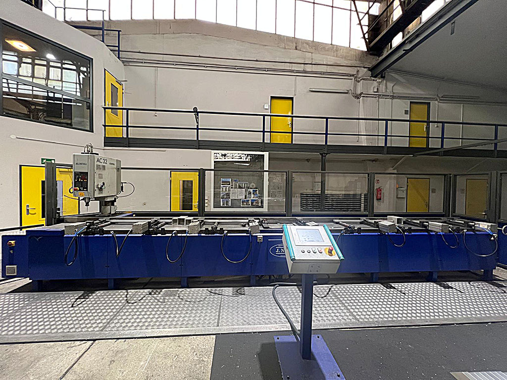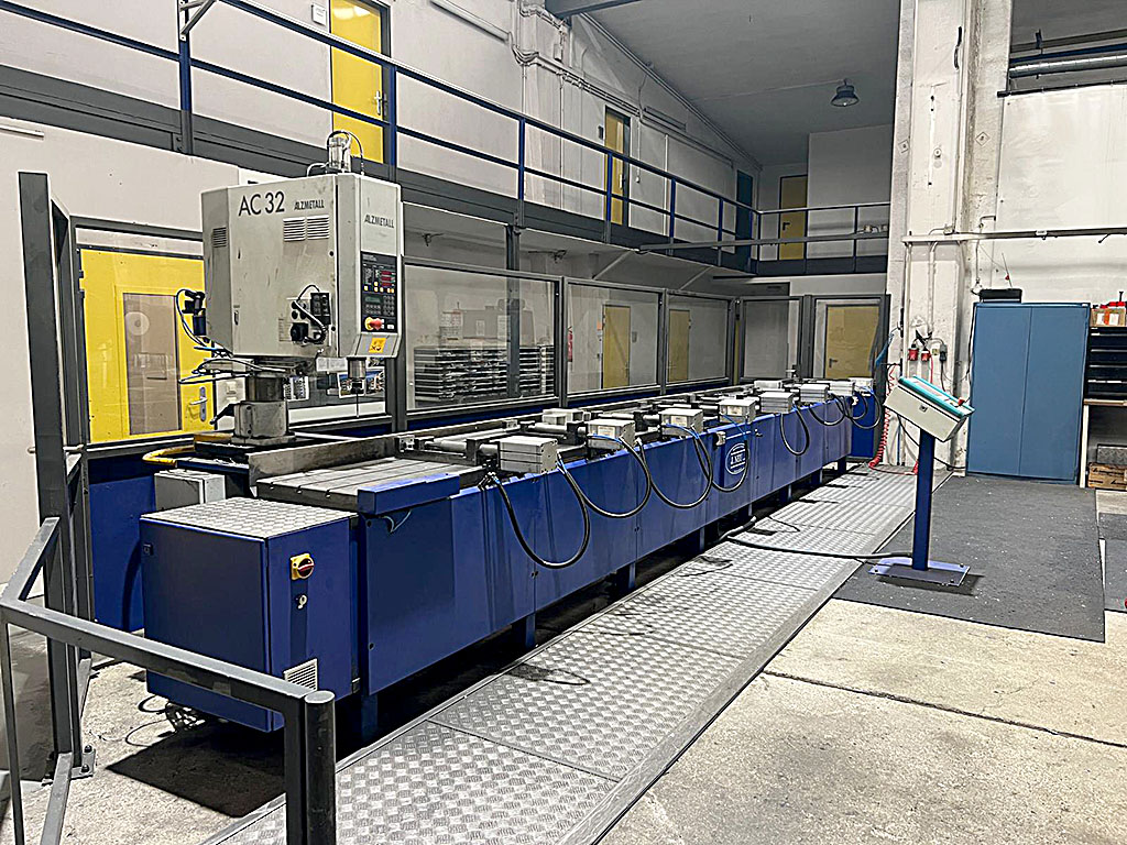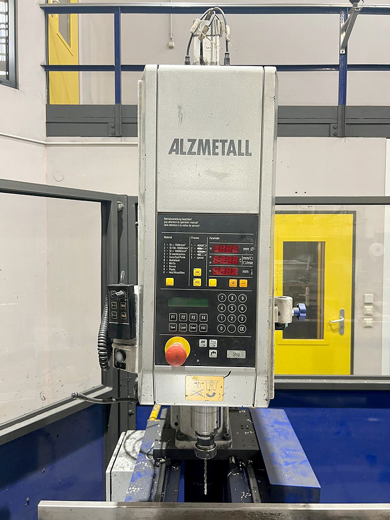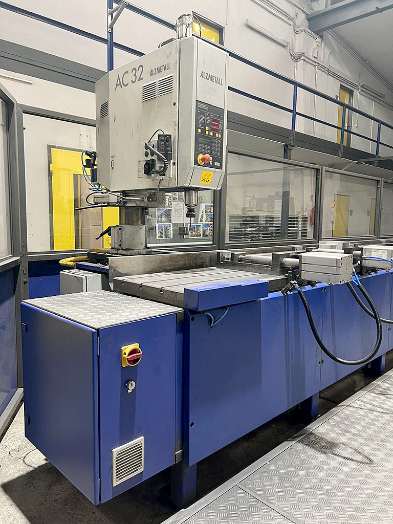 | Description Drilling unit / profile drilling machine Alzmetall AC32, drill head. The maintenance work includes: new disc spring set in the drill head (11/2025), new servo motor for speed adjustment (09/2025), new disc set for shaft 2 (approx. 09/2023) and a complete belt replacement (11/2024). Note: V ribbed belt is 1.4mm before the wear limit. Inspection by appointment possible. |
