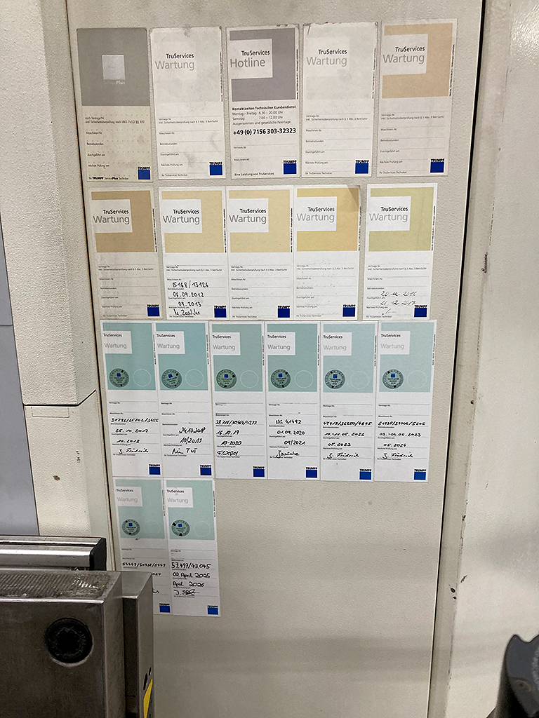 | Description Offered is a hydraulic CNC press brake year of manufacture approx. 2005. Press force: 1300kN, bending length: 3230mm, column distance: 2690mm, usable height: approx. 385-535mm, stroke: 215mm, control: Trumpf TASC 6000, CNC backgauge, multi-axis system X/R/Z1/Z2, hydraulic tool clamping, front bending supports Support consoles, safety device: BendGuard / light curtains. Maintenance: Regular maintenance carried out by Trumpf, last inspection approx. April 2025. Viewing possible by arrangement. |