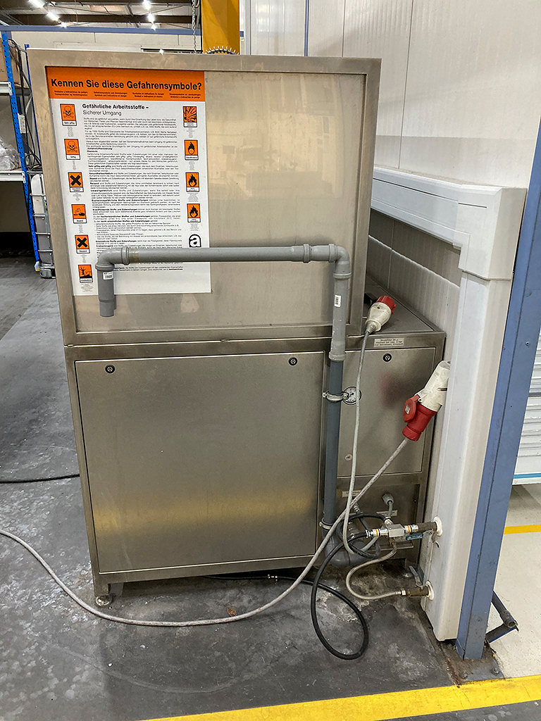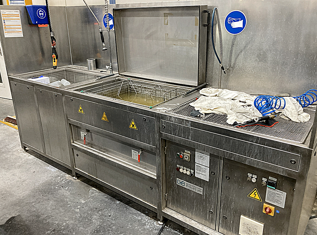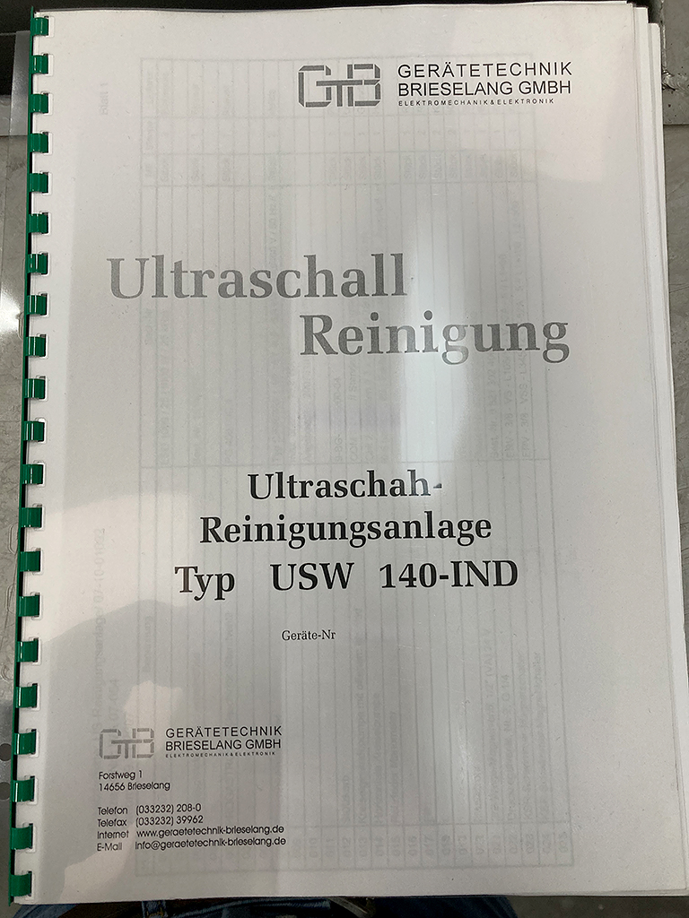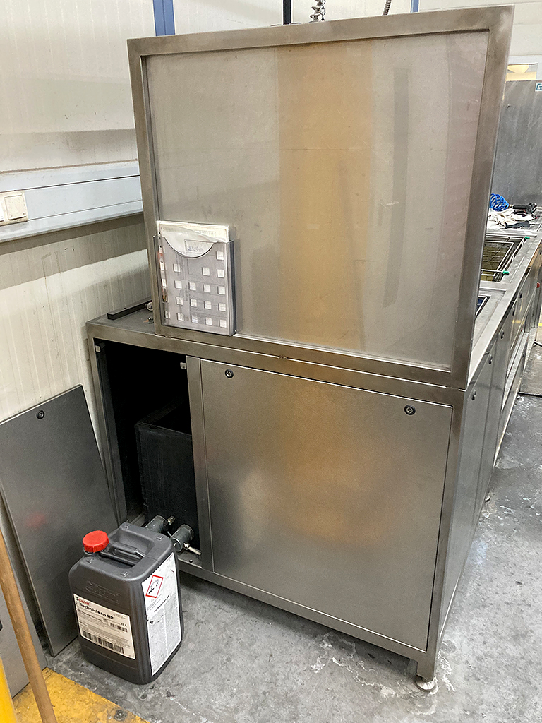 | Description An industrial ultrasonic cleaning system is offered. System type: multi-chamber cleaning system, stainless steel design. Tanks: 2, documentation available. Inspection possible by arrangement. |