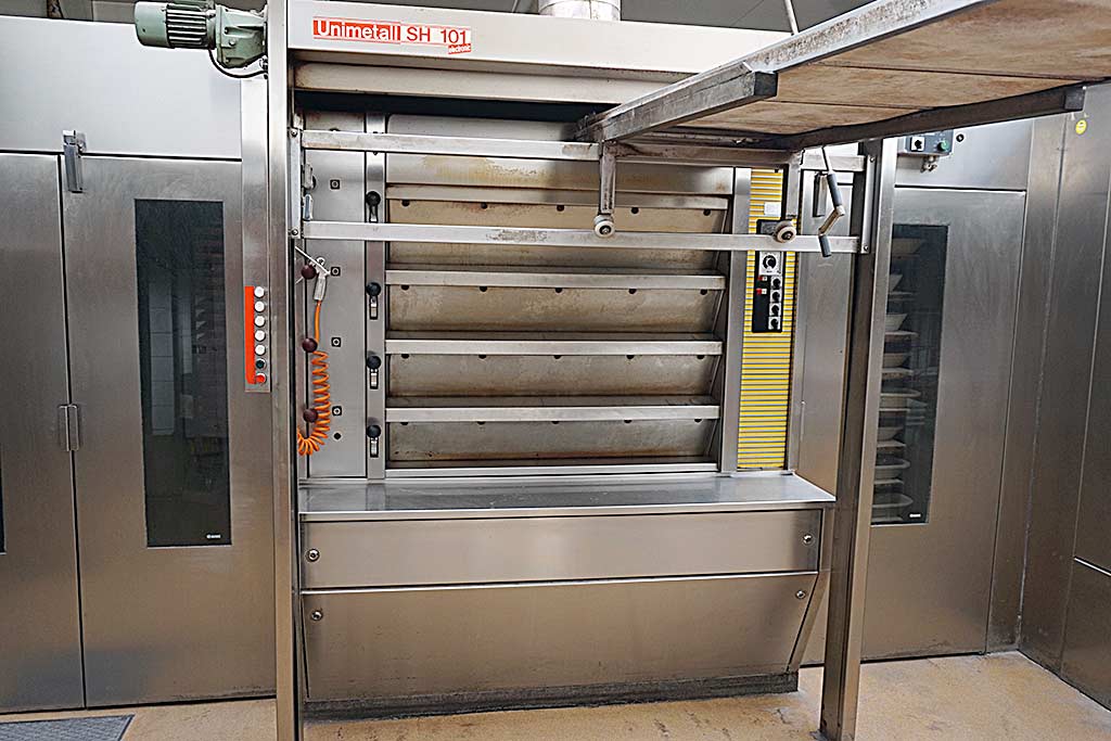 | Description A Unimetall multi-deck oven, distributed by Maewe, is available. Decks: 4, heating type: oil. Including lifting table. An on-site inspection is possible. |