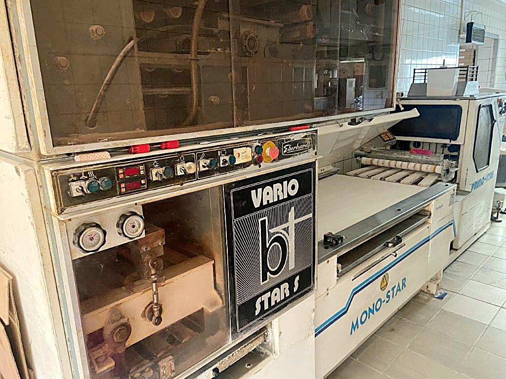 | Description An Eberhardt bread roll line is available. Head machine: Primo-Star, depositor: Mono-Star, rounding unit: Vario-Star-S, production capacity: approx. 4000 rolls/h, product weight range: 20g-85g, line length: approx. 2750mm. An on-site inspection is possible. |